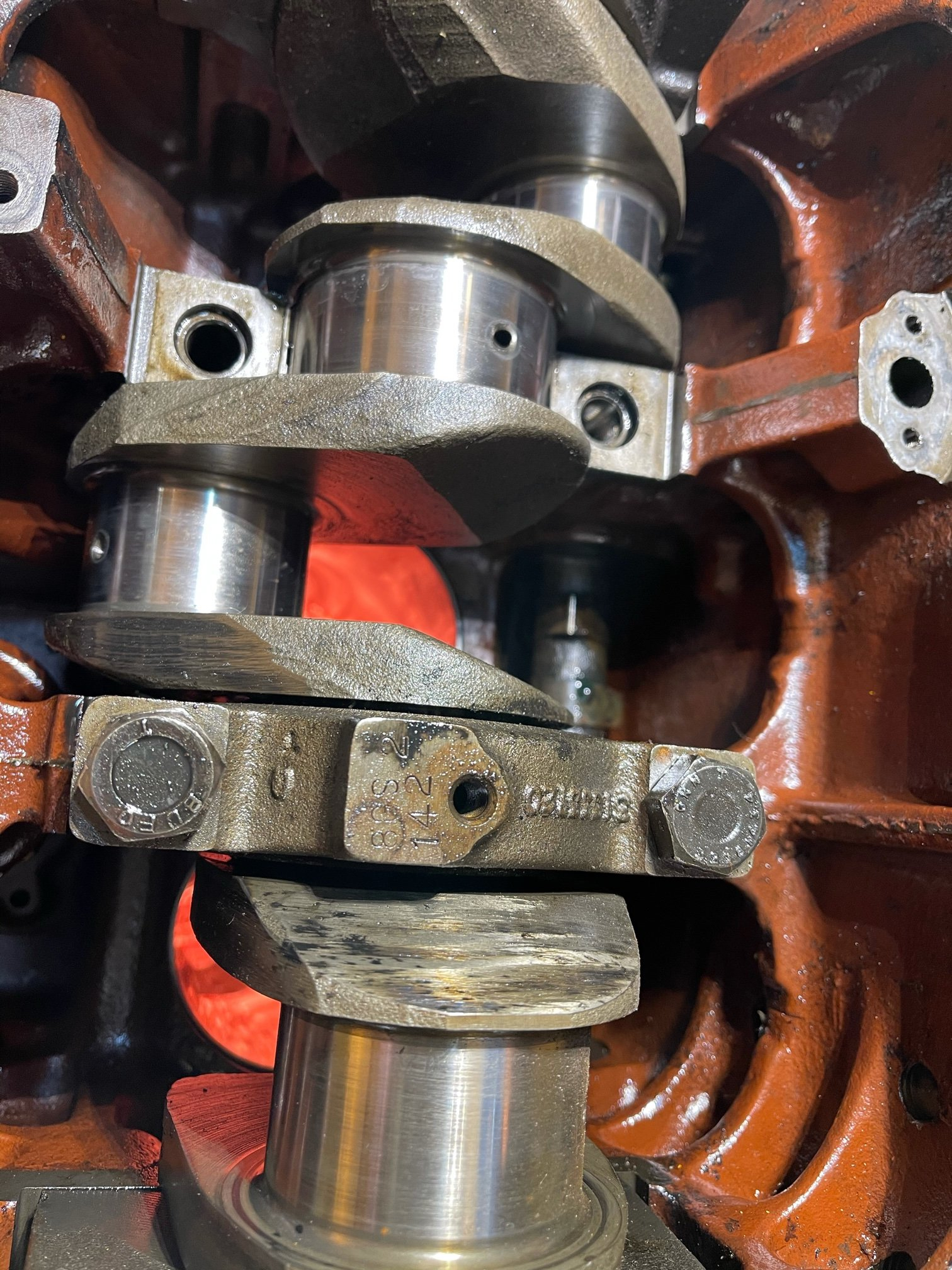 Here is the latest update. I finally got them all out. No.1 was the most challenging. It moved so slowly I had to measure progress with the dial caliper. Here is that movement log. Started with a measurement from the piston to the top of the sleeve. I would tighten the puller to maximum tension I felt safe without pulling out the threads I put in the piston, then go under with a 3/4" diameter punch and a 20 ounce hammer using 10 blows, then taking the measurement, then I removed the bearing insert so I could drive the piston down further to clear more rust. Measurements: 4.011- 3.965- 3.925- 3.820- 3.786- 3.745- 3.650- 3.410 then it kept moving just with the puller. The other ones all came out just with the puller but would not allow me to turn the crank until numbers 1,2,5,6 were out, then I moved it enough to allow me to pull no.3, with just no.4 remaining I could move the crank only slightly, so I put the puller on it and finally they are out.