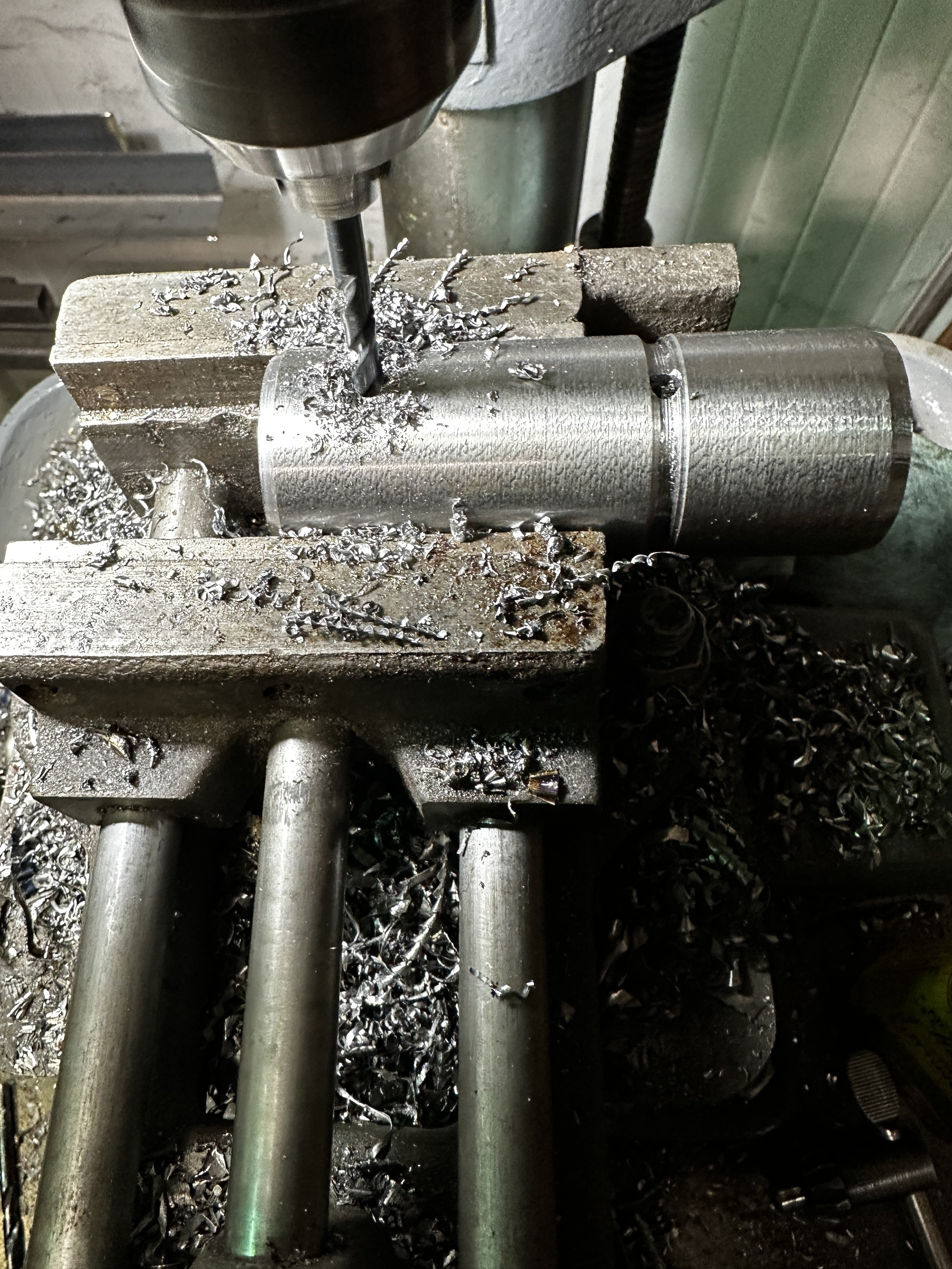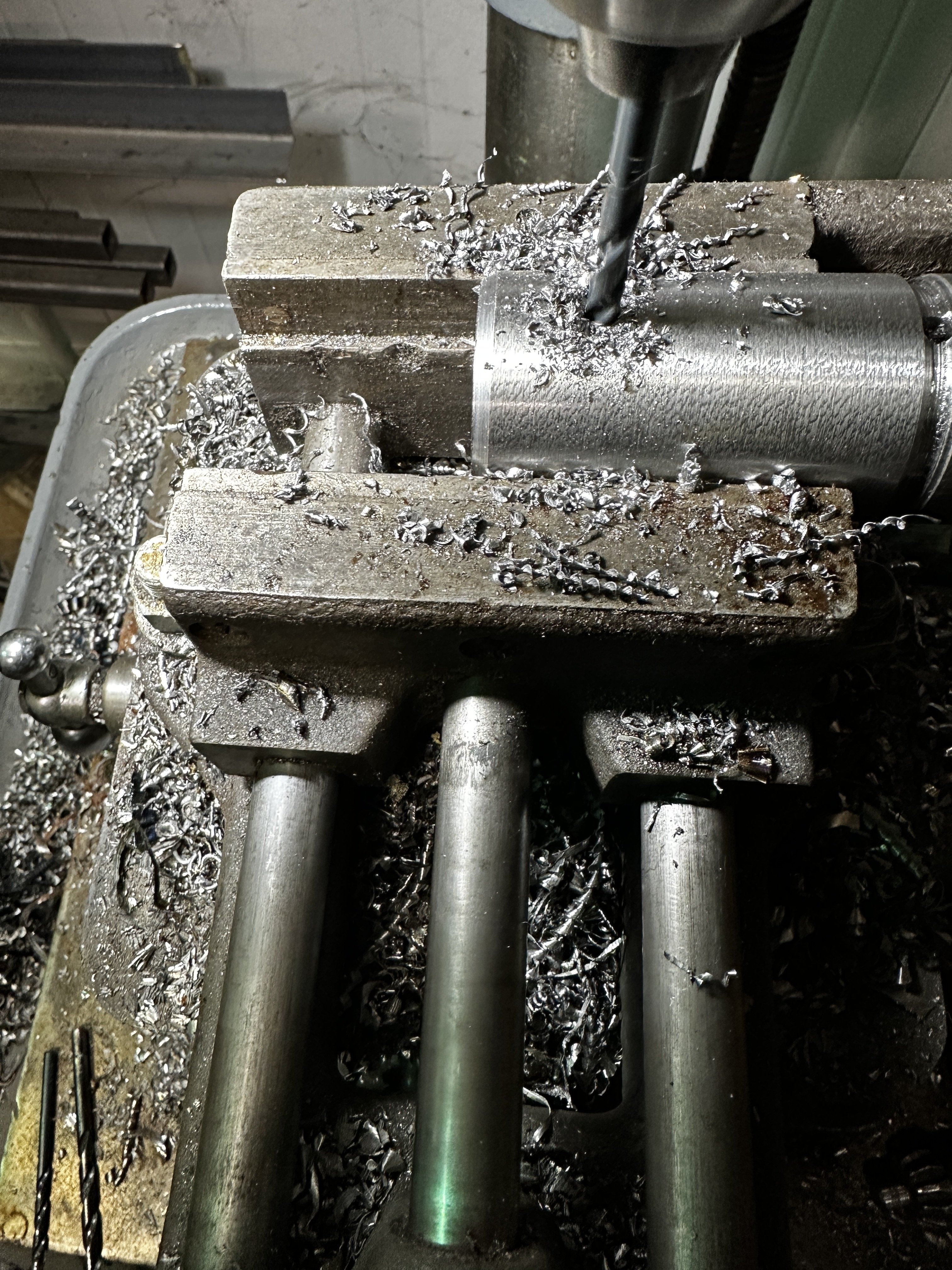 Well, I finished the VFD conversion on my lathe. So that allowed me to make the lower pins for the clam cylinders. I had reamed the worn cylinder base holes and the ears on the bucket as well. The pins are now ready made from 4160. Oversize to match the reaming and I drilled them and grooved them for grease fittings. Now to make the other stainless tube that supplies the clam cylinders.