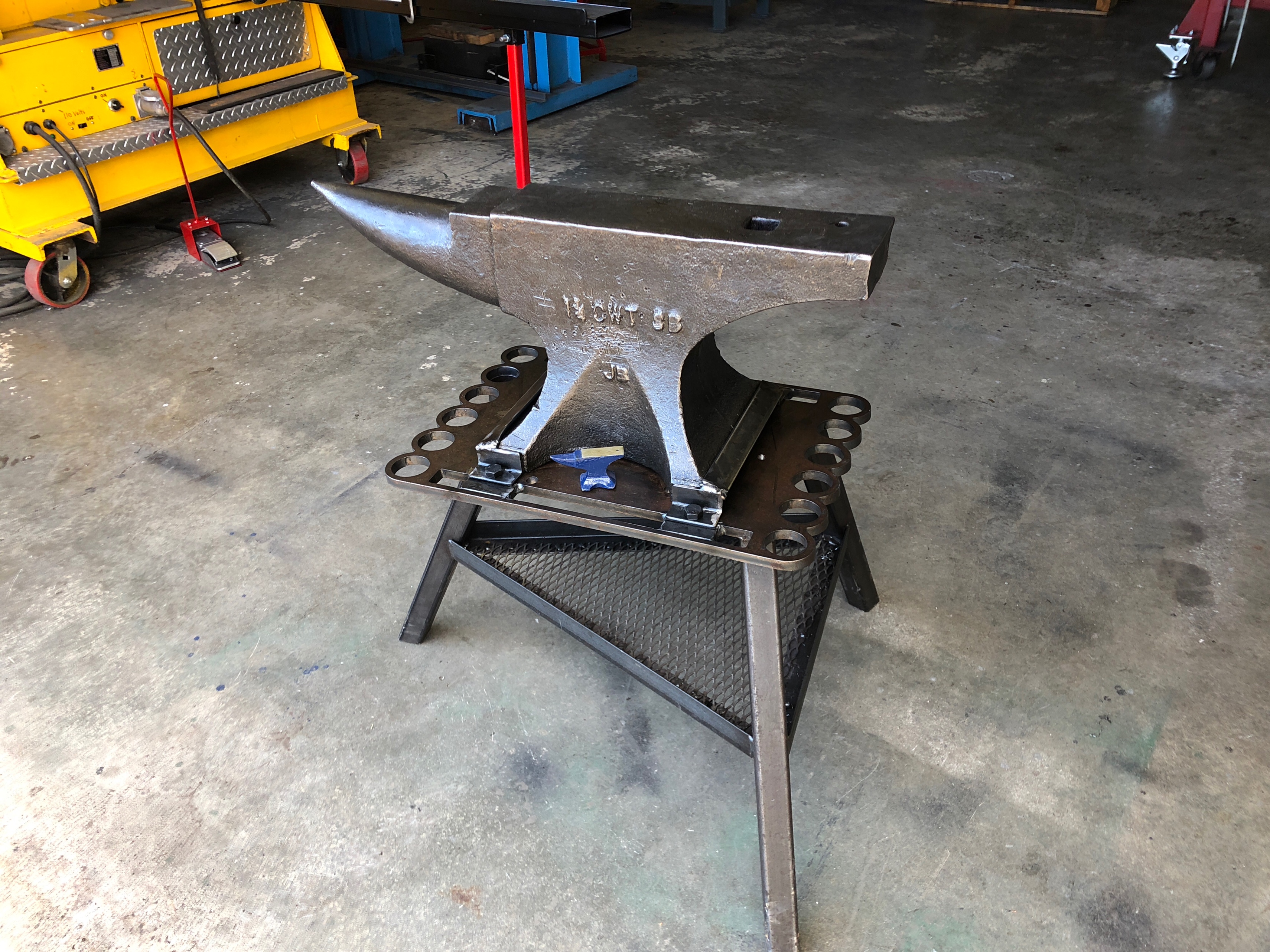 I have a 175# anvil that I got from my dad after he died 51 years ago at 42 years old. I got that and a 10' welding wood work bench covered with heavy gauge sheet steel and some 1/2" pate covering the end 2 feet or so for the anvil placement. Of all the small hand tools I got when he passed away, the anvil will always have a place in my heart, as strange as that seems.