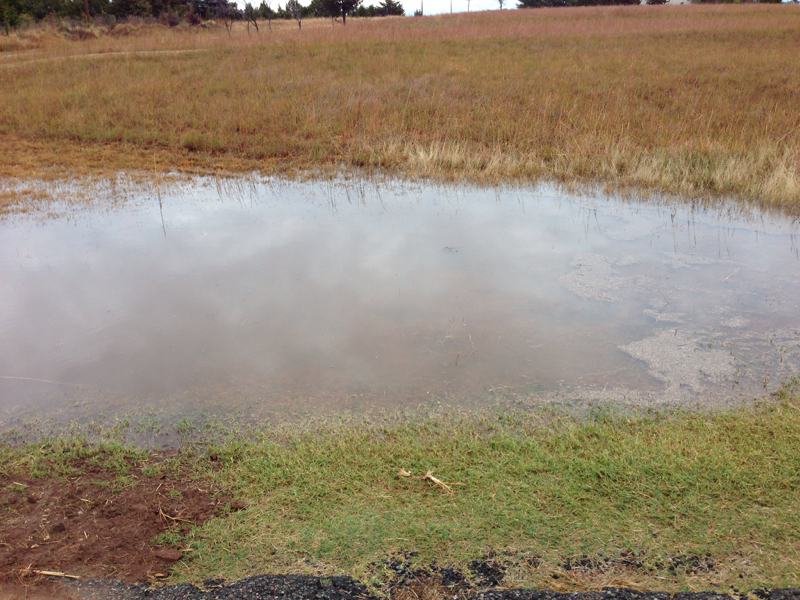 Is there a ditch along the perpendicular road (at the top of the first pic) you can drain it to with a tile?