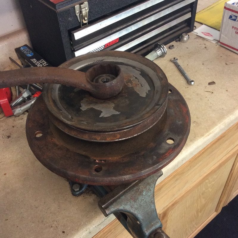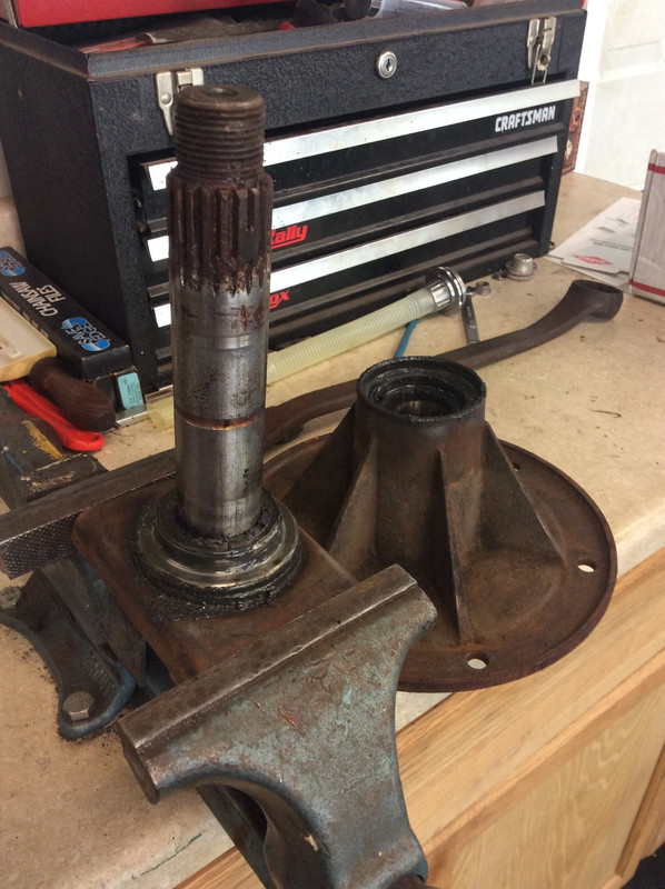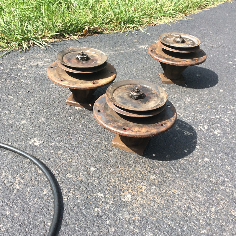 The spindles were wire wheeled off and cleaned up to get ready for disassembly. Only going to replace bearings in two of them though. The other one is nice and tight still.