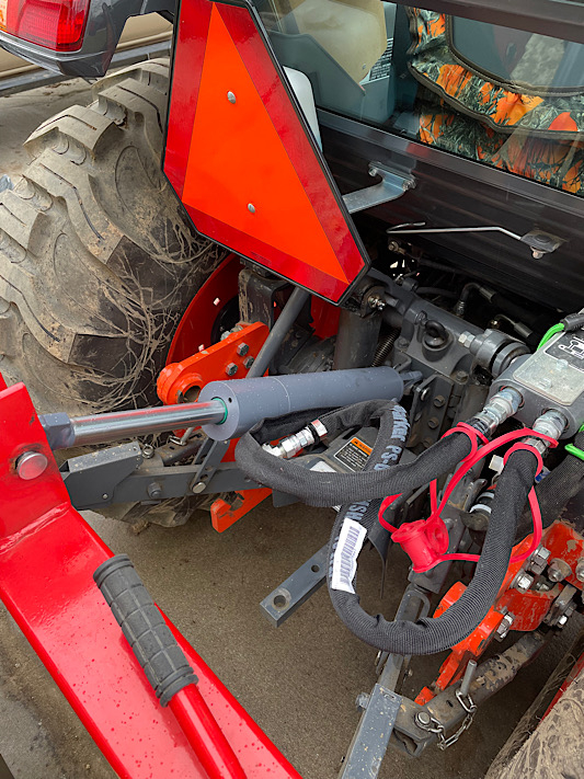 M59 has a really stout loader & frame (4000 lb lift) so I stopped by the dealer and bought a SSQA 3pt, dropped the FEL bucket, put the SSQA 3pt on the front, hooked the 3pt to my smallest 6 foot back blade, and reversed the blade. Then gave it a try.