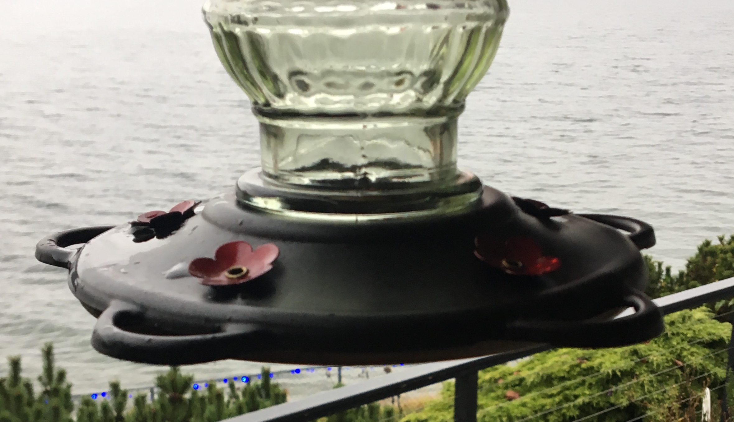 1.5in as recorded by your new weather station? That is something that I have been interested in as much for wind speed as for rain. As for wind blown rain and now knowing that I may have resident hummers I need a better rain shield. I only have an upside down aluminum pie pan over the center of the hooks and I need something with a larger diameter. I may look at a plastic platter that won’t be missed until the next big family shindig. Yikes*. I also now wonder about a freezing glass feeder.