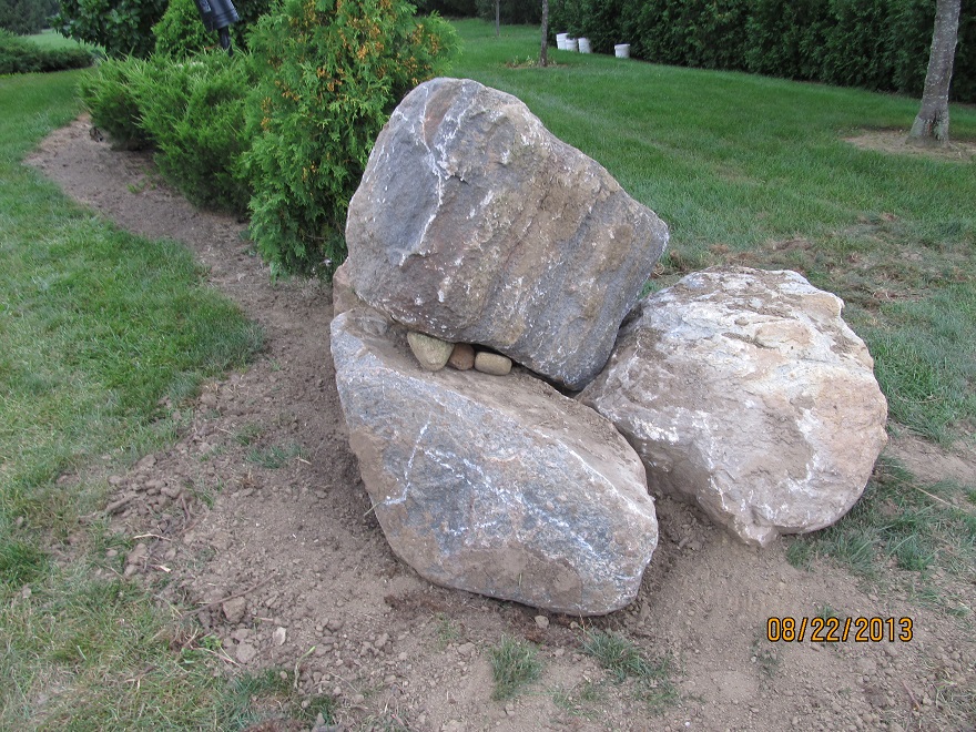 Our current things are pretty tame but we're older and I've calmed down. Here's some stones I found that will have to make do. The big rock sitting on top of the others is about 2200 lbs. Serves no purpose other than just sitting there. Wife likes it.