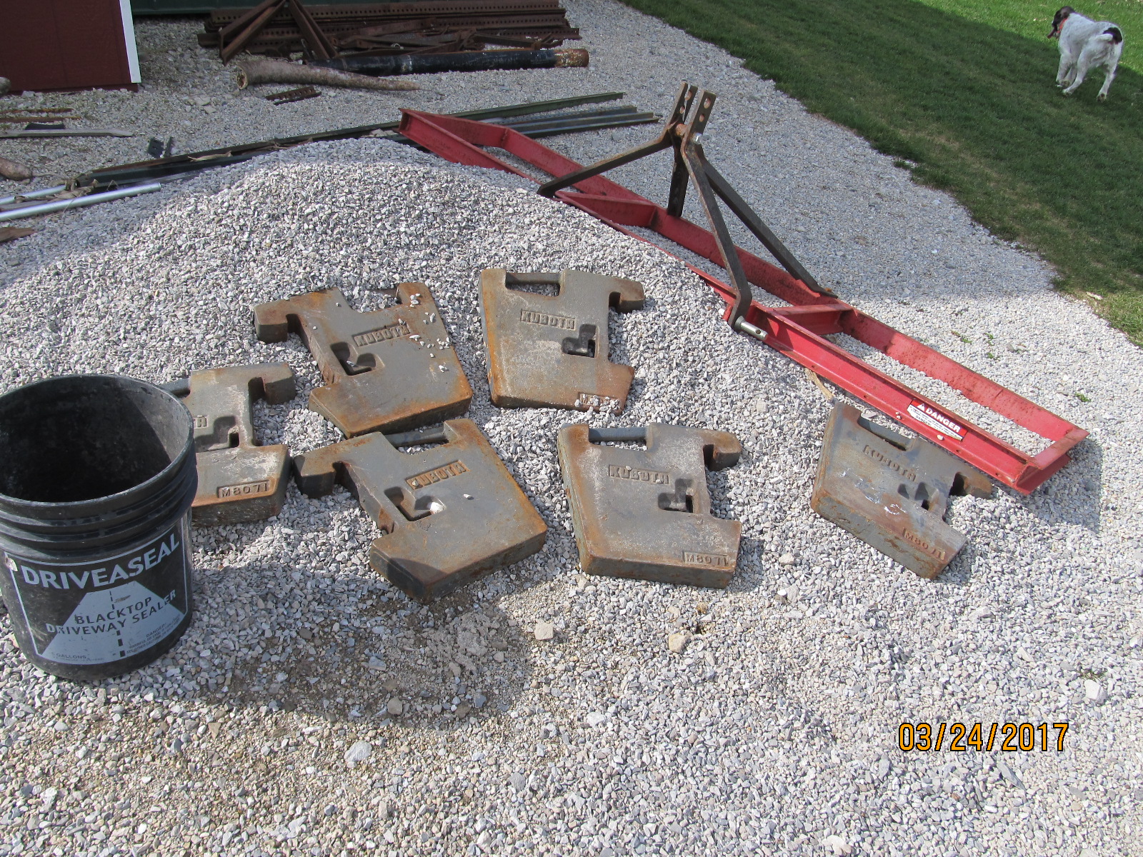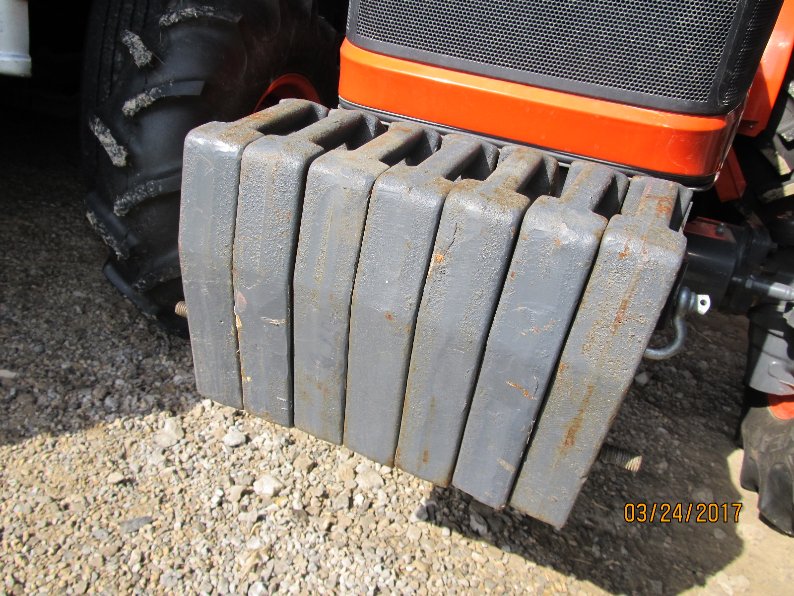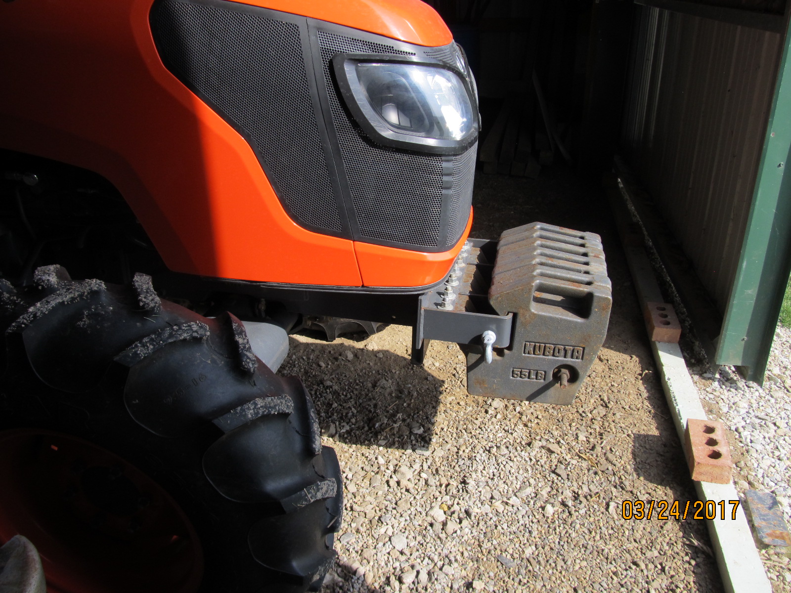 I bought them used for a good price along with the bracket. The bracket is for an M5460 or something like that but through judicious cross-searching I learned it would fit my M7040 as well about 30 other Kubotas. I wonder if Kubota doesn't like to fool with part numbers and applications. Anyway, it fits so I bought the bracket and 7 weights for a total, I think, of 800 lbs. I'm good with that.