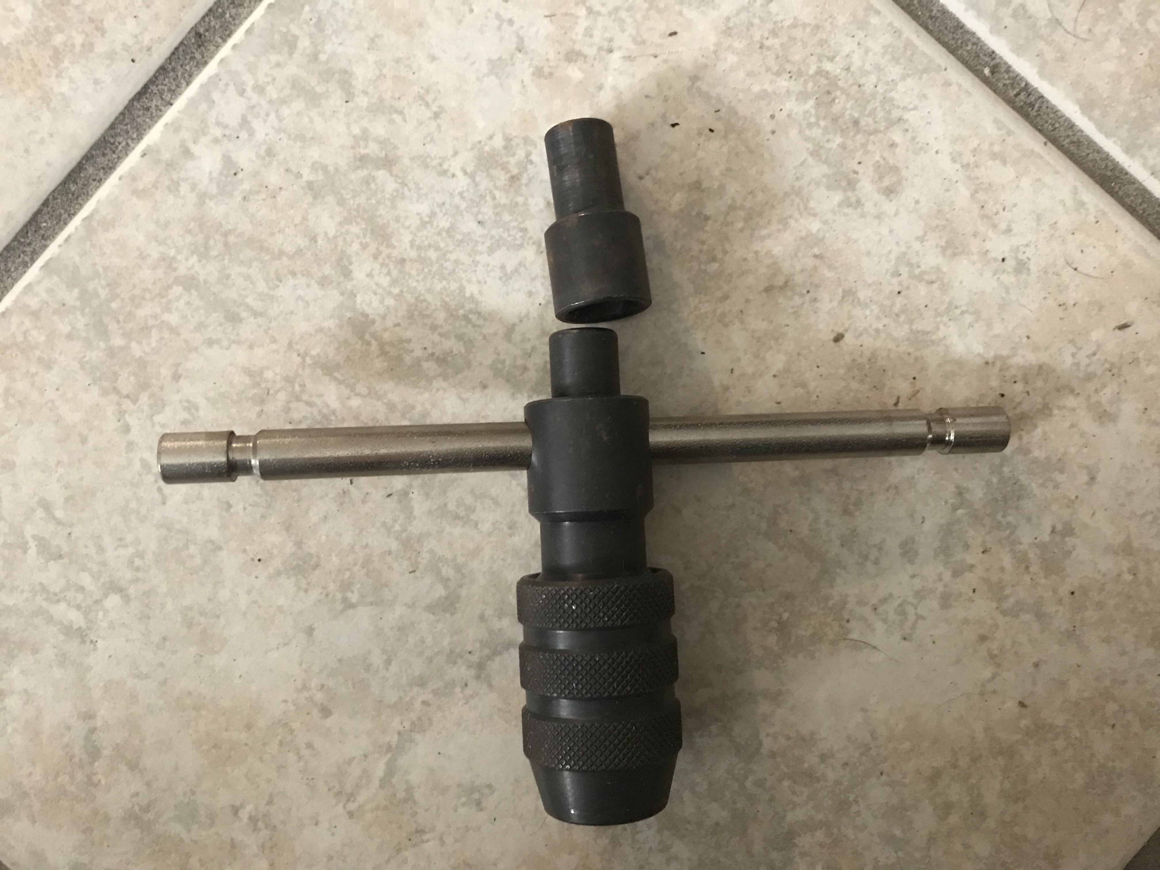I tried looking for one but couldn't find one. It looks like it's just a variation of the Brown&Sharp tool. One uses the center of the tap handle while the one you pictured uses the outside of the tap handle and the top piece to center it. Does the top part stay attached when using it or is it always loose? The only down side to the B&Sharp is that without a power feed I'm going to be using one hand to turn the tap and the other to put pressure on the tap using the drill press. Depending on how stiff the spring is on the B&Sharp I could use the drill press stop to hold it in place but I would rather not for this application as they are basically just nuts that you have to turn by hand. It's actually pretty time consuming and I would have to do it each time.