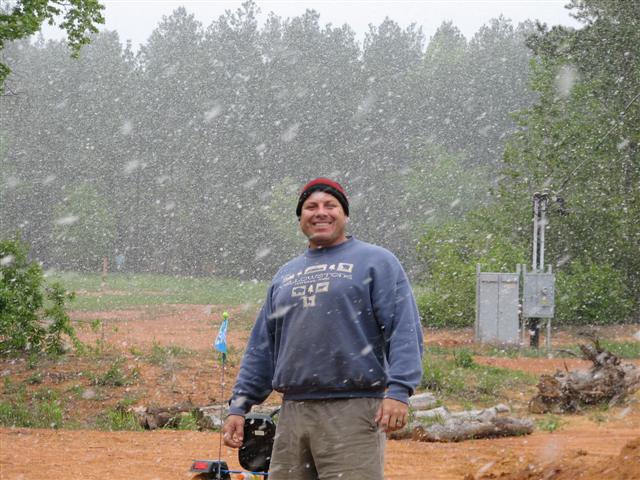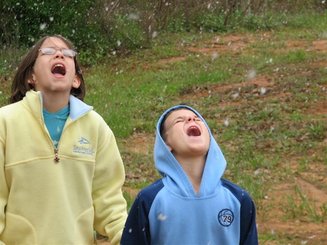 Ten minutes ago, 10:10am, our daughter yelled out that it's snowing outside!! Of course, we thought she was either joking, or had lost her mind. This is East Texas where we are famous for our heat and humidity. Not snow in April!!!!!!
