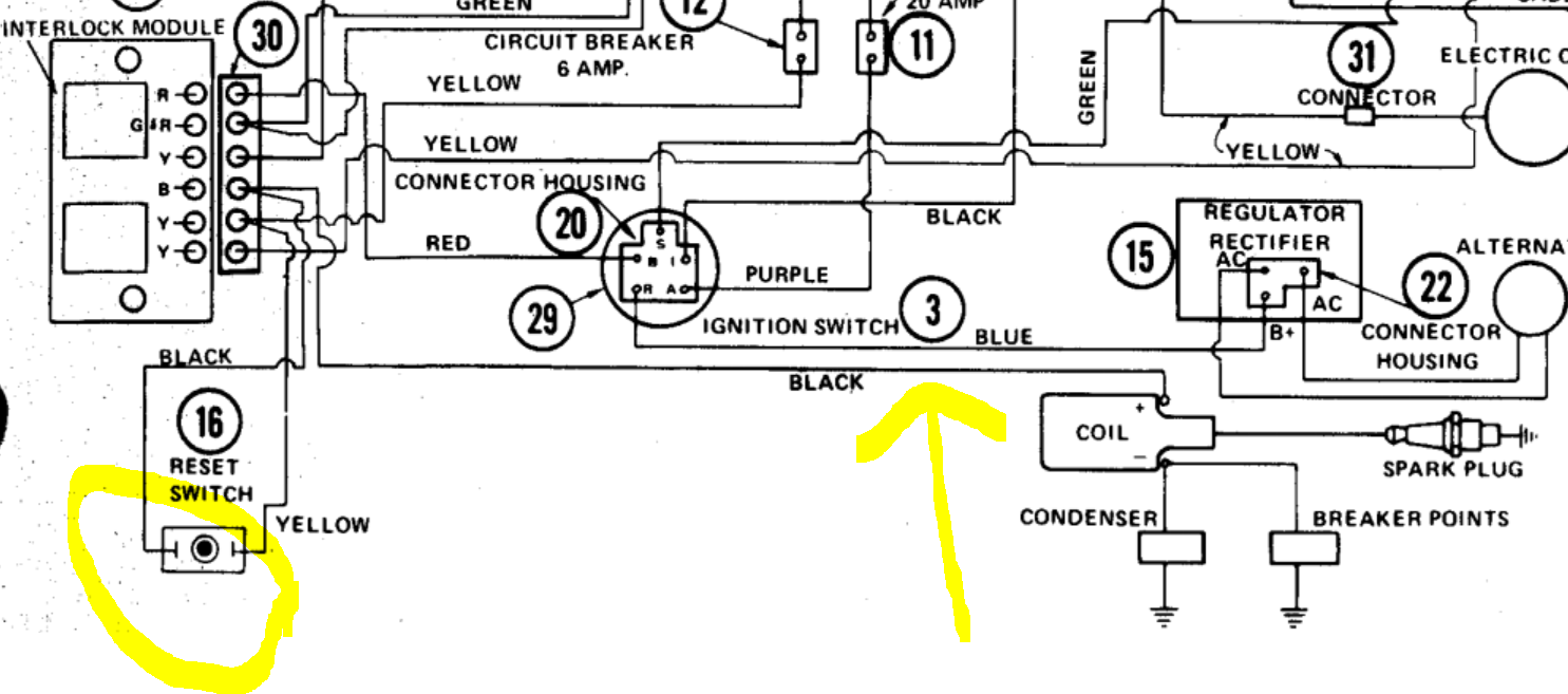 Looking for information about the Ariens GT16 lawn tractor : Just bought it and I cant get it started turn the key but nothing happens I know there are several safety switches but have no idea where they are located Also looking at the reverse valves for rolling it backward there down and do not move no matter if the lever is up or down yes battery is ok. Thank you for any help.