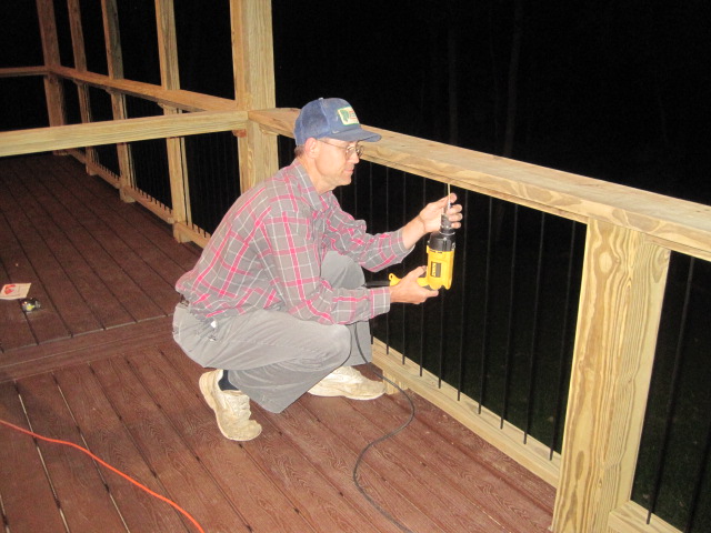 We finally have the railing installed on the back porch/deck! Yay! Now we can start using it.