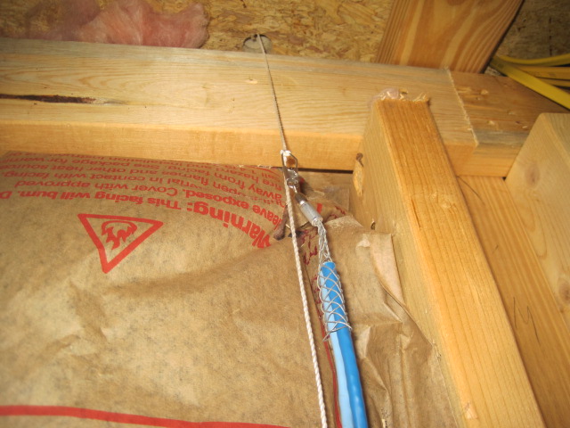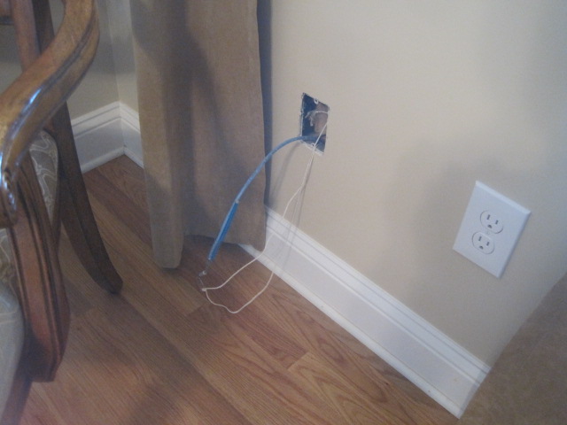 I ran a couple Cat 5 network wires from the office to other rooms in the house, one to the LR and one to the guest bedroom. Wireless network connections are slower and less reliable than hard-wired connections. I eventually want to put a patch panel in the hall closet and run all the network wires to that central closet. So the two wires I just ran are somewhat "temporary".