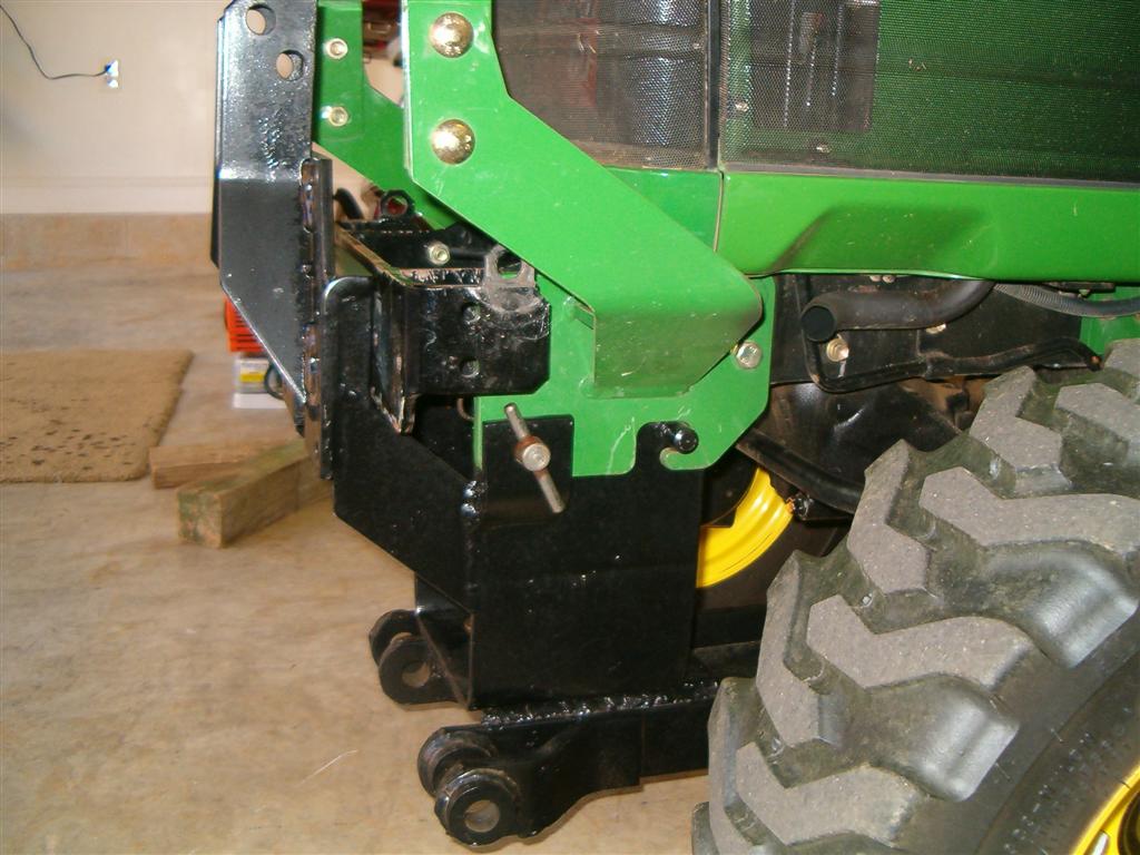 I have an older JD #380 plow adapted to my machine, it has the subframe to the mid section like JD755 mentioned. I will post pictures below. I have recently installed a Meyer plow on a JD 2320, but used the factory quick hitch. Thread here: Meyer's plow on a JD 2320 - TractorByNet.com