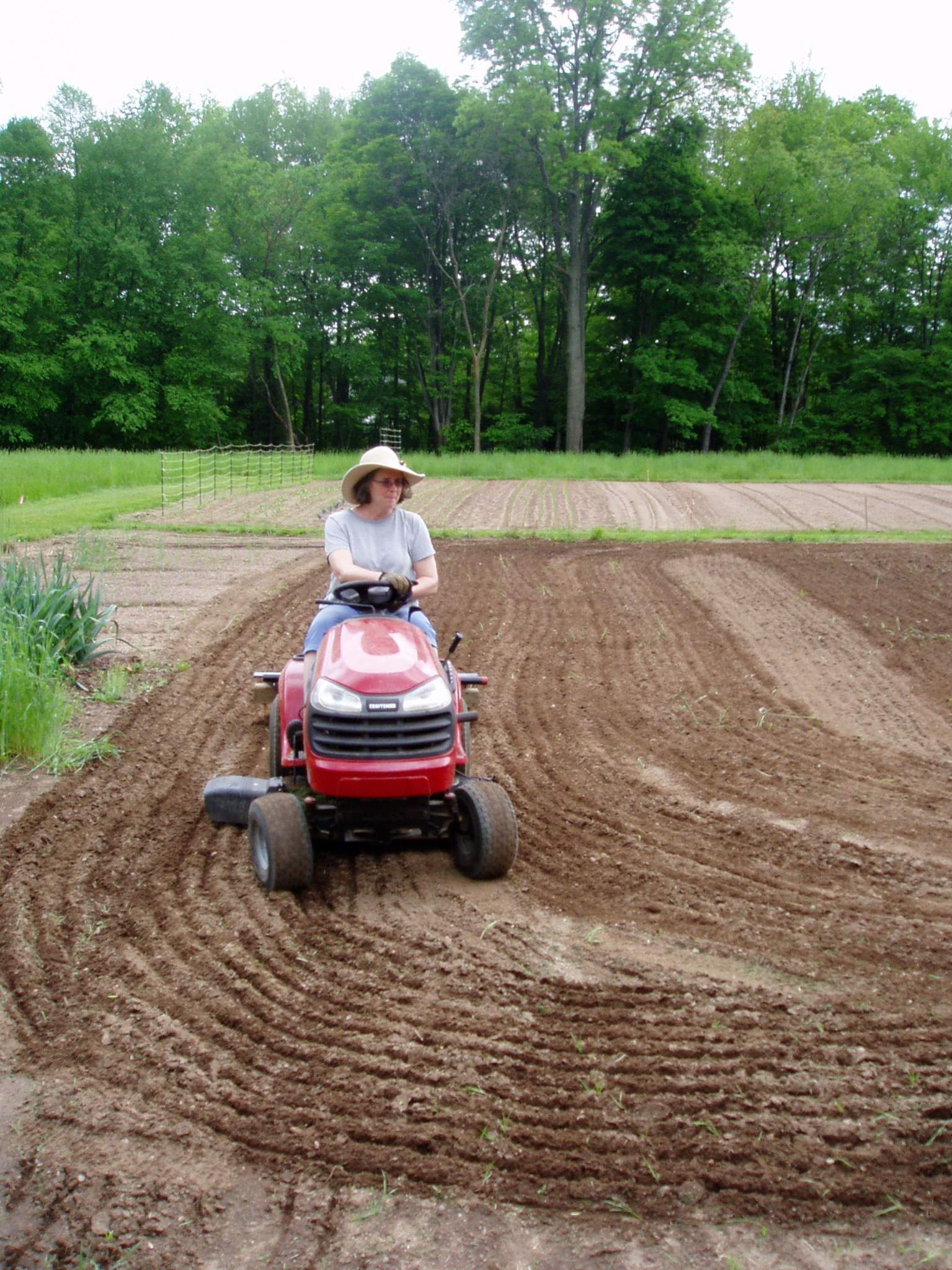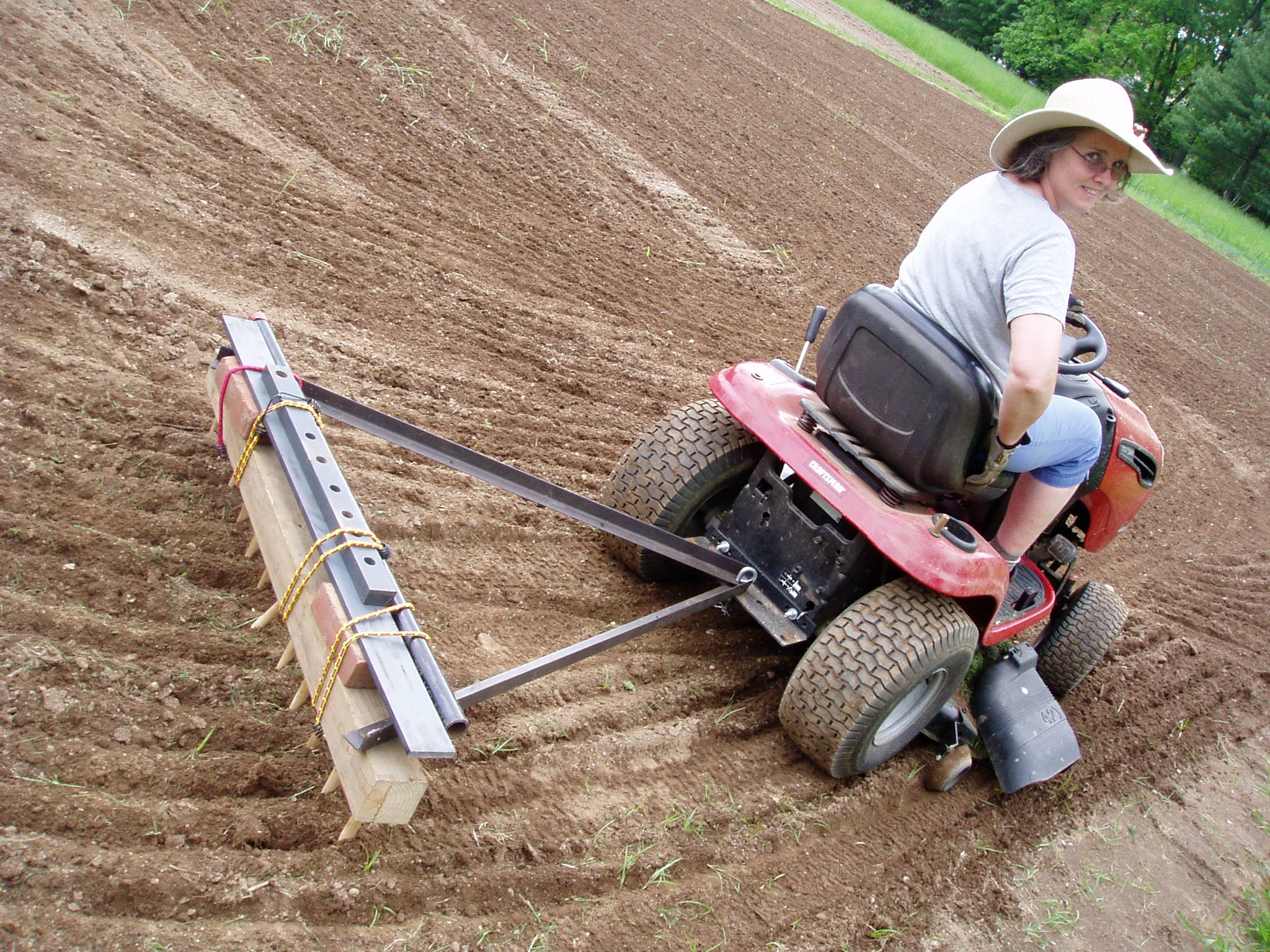 Planted cover on the plot we've used the last 3 years - going to give it a rest and work a new plot just behind it. Here's the rake after tilling & the first rolling - The Plant Manager in action:
