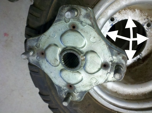 There was also a set of tires and wheels to go with it, and that is part of my dilemma. I have taken apart one of the front suspension setups, and have the hub and spindle cleaned up, since it has been sitting outdoors for years. My issue is the rear tires, my preferred ones, are 10.5" wide as opposed to the fronts that are taller and 7" wide. The issue I have is the hubs/rims for the rear. They are metric but since I don't any metric measuring devices, they measure about 4 bolt on 5 1/6" circle. Plus the rear axle on the old quad had the bearings in the center of the axle, instead of wheel hubs, like the front.