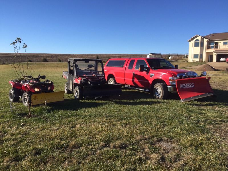 Has a 5' plow mounted on front with swivel/toggle control on the shifter for winter duty...