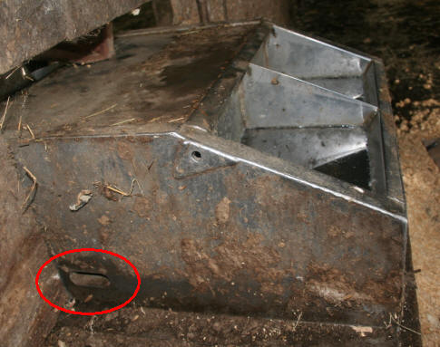 Also not shown are two bolts that appear to bolt the whole thing to the cement floor. One is broken/missing. The wall goes across the center, so it doesn't seem like removing those bolts would be how to clean it.