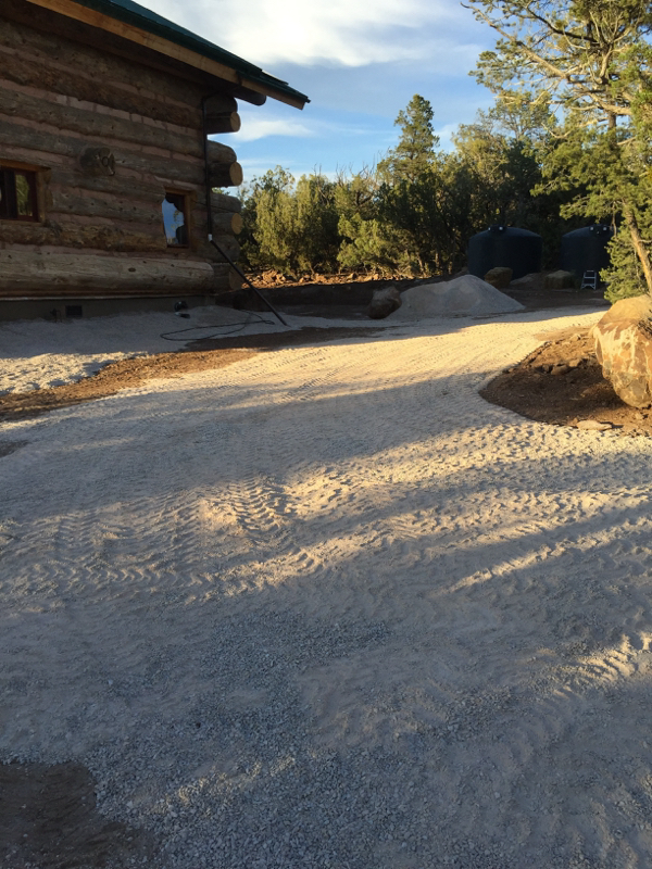 I started spreading chat (crushed limestone) all around the house to eliminate the mud problem. Sunday I spread about 30 ton.