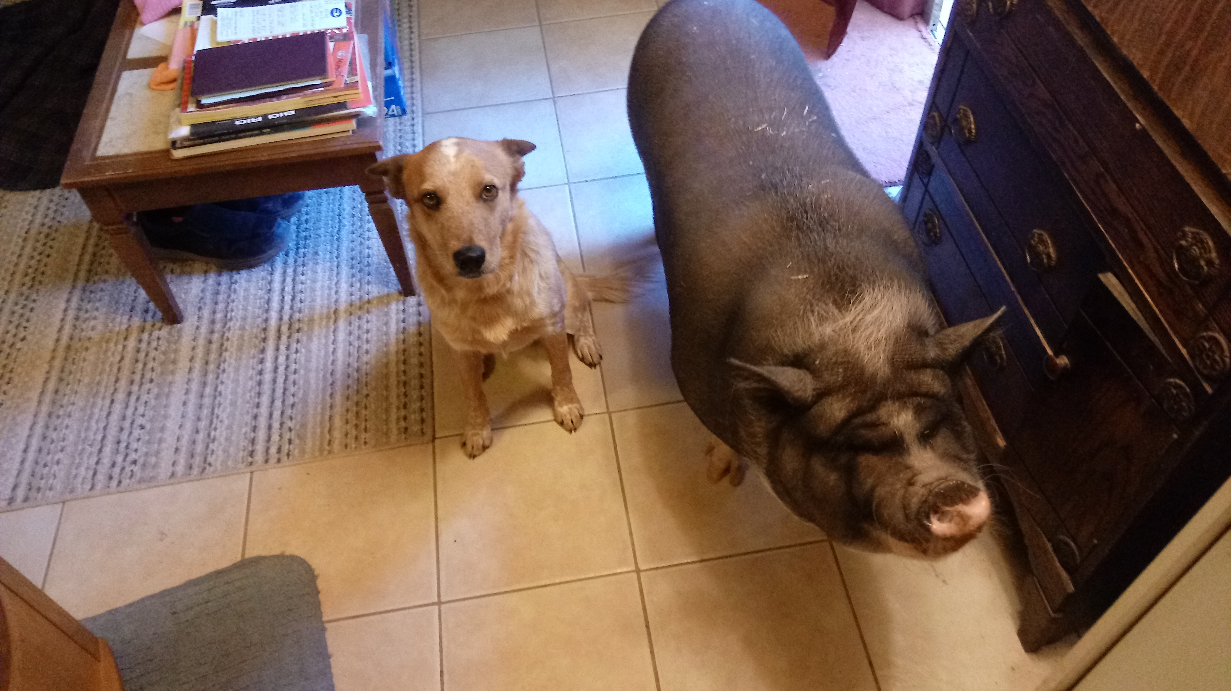 From what I've been told by a vet, I should expect Oscar to live as long as a healthy pet dog. He will be ten years old in August, so anything after that is going to be a bonus. Last year he started losing weight. We've been feeding him what we feed the horses and goats, for years and he seemed to do well on it, but with the loss of weight, we decided to go back to dry dog food. That's what I fed him for years before we got the horses and goats. He is fed a scoop in the morning and in the evening, plus an apple, leftovers and some corn, and he's looking great. With the cooler temps, his activity level is much higher and I've even seen him running from out in the pasture, back to his house.