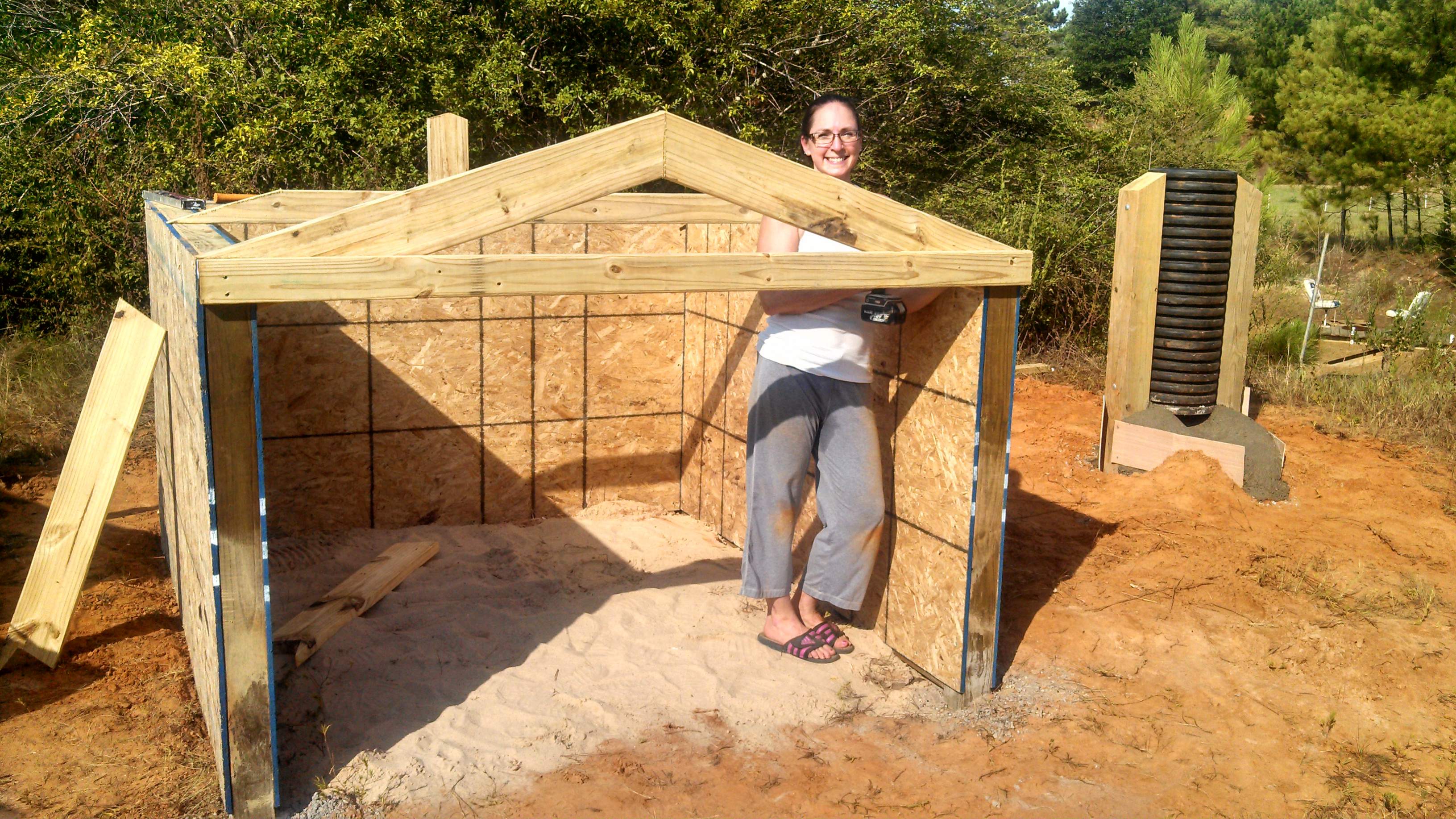 Next weekend, well cover the walls with Hardi, paint it and maybe put on gutters. I need to order the trim parts for the metal, but it's not high on my list to get it done right away.