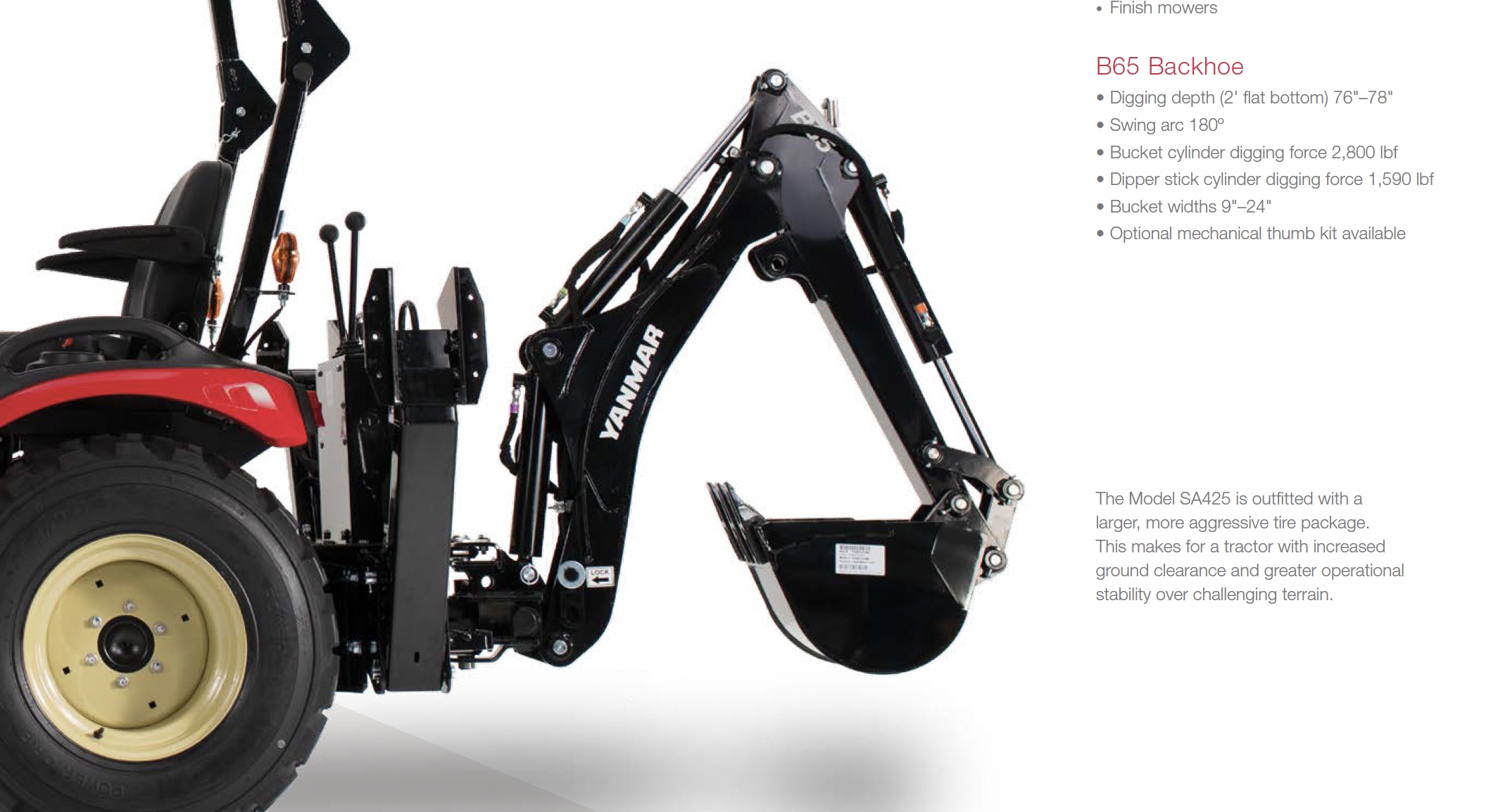 B26 backhoe. The dipperstick cylnder s the middle one of the three, which is the cylinder just above the Yanmar name decal.
