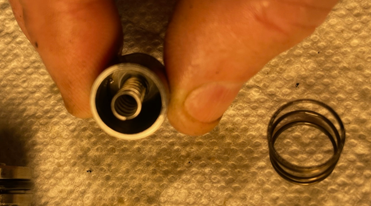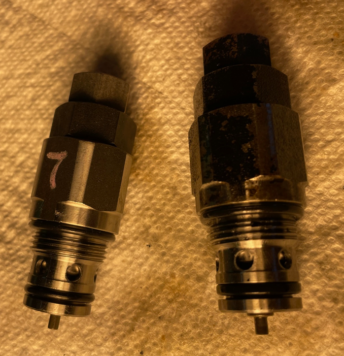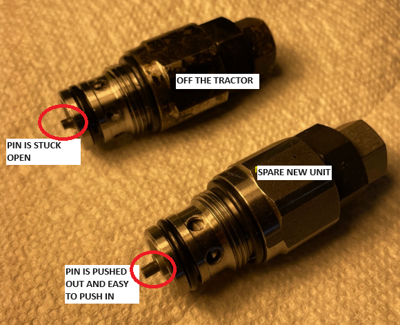 7K521-63732) I had. The pilot has a pin at the bottom with a lightweight spring that keeps it closed and on the valve I removed, the pin was stuck open. The pin on the spare valve moved freely and it only took a small amount of pressure/pushing to open it.