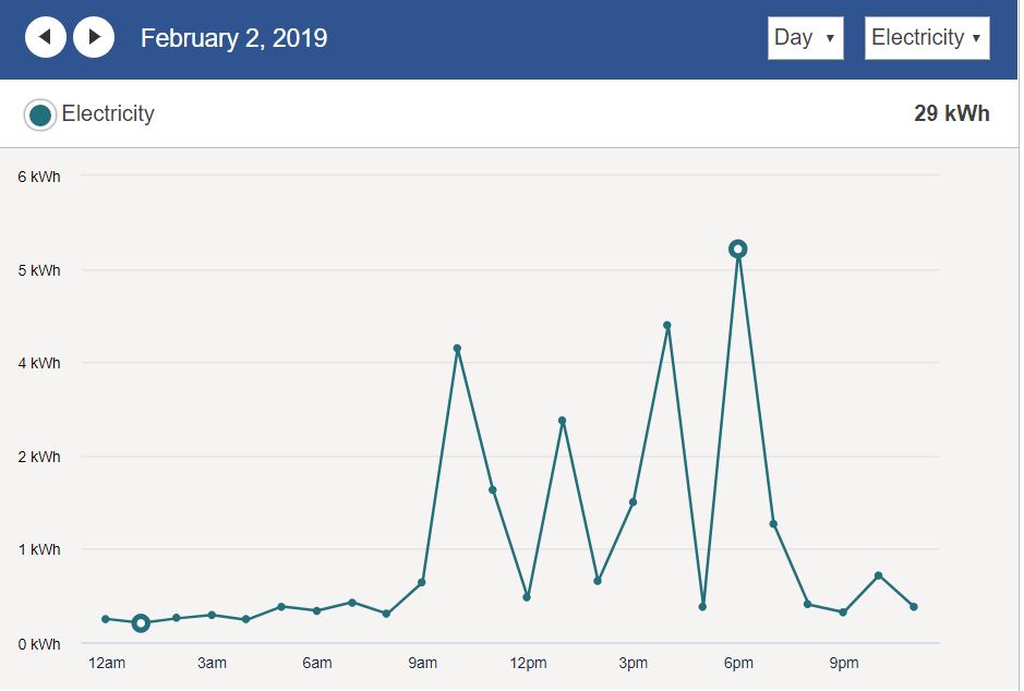 My electricity usage this day included: