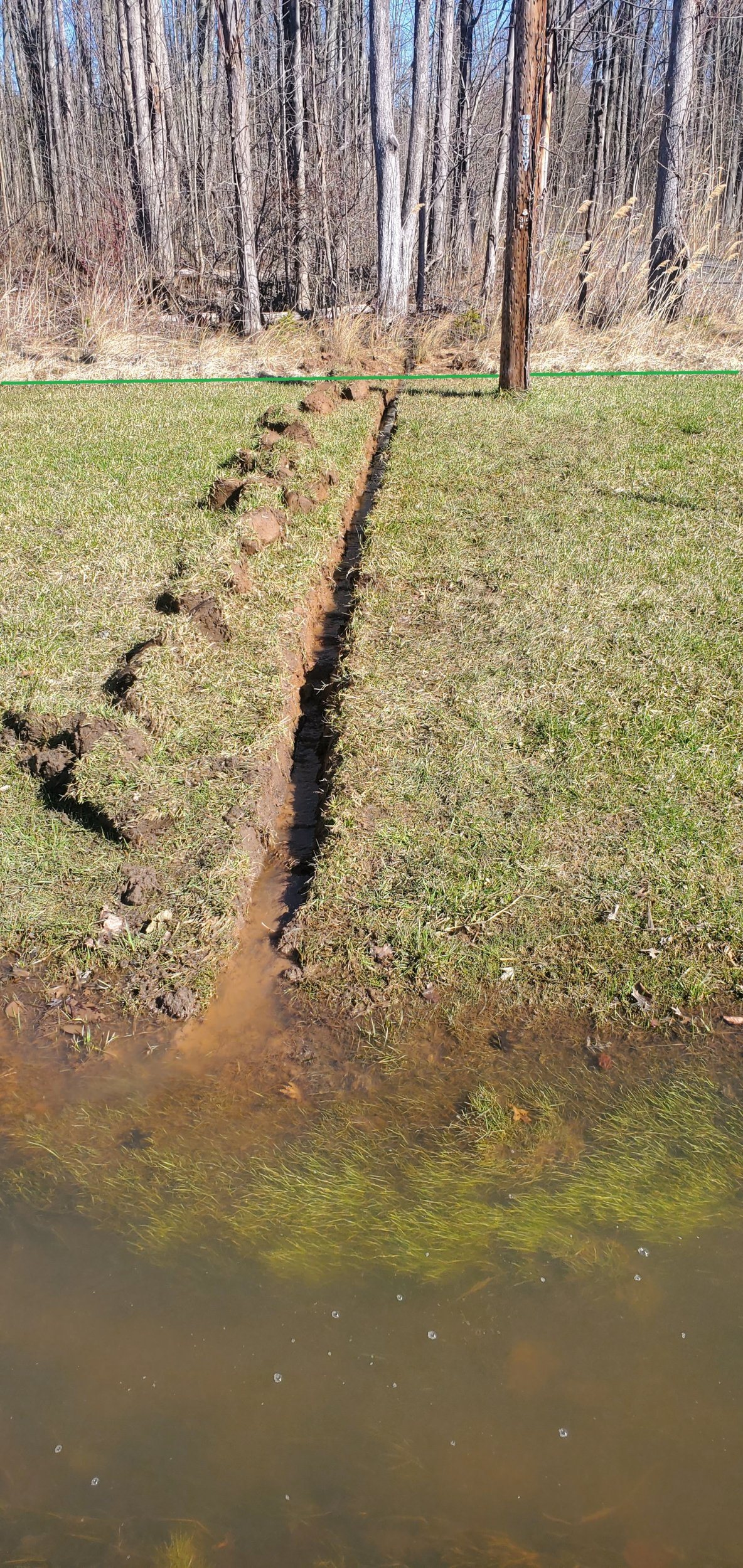 I also started to ditch for a drain tile as that area is routinely under water in the springtime, and I don't want my meter pit enclosures to always be full of water. The Highway dept has already complianed about a previous drian tile I connected to the front ditch, but the gov't can eff off tbh. I landscaped this area years ago and effectively dammed up the front of my property, so now the flow of water is more metered into the ditch as opposed to the high flow it was before due to the front of my lot being almost as low as the center of the ditch.
