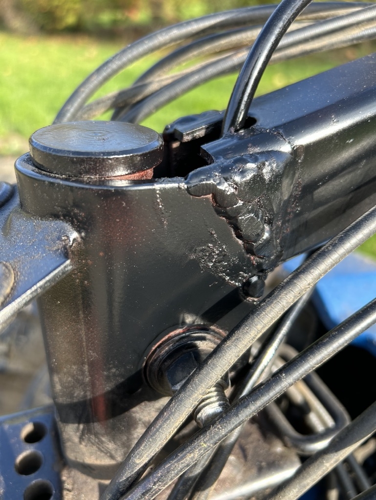 I like to think that I look after my tractor and my implements pretty well, and try my best to take good care of them. I therefore still find it difficult to forgive myself for not seeing this at an earlier stage. It should be no excuse on my part, but the fact that most of the handlebar assembly is hidden out of view by a plastic cover, does make it difficult. Now that I’m aware of the problem, I will remove this cover more often, and do a thorough inspektion. Had I seen the first little crack on the left hand side much earlier, it would have been easy to repair and at the same time make the weldings a bit stronger