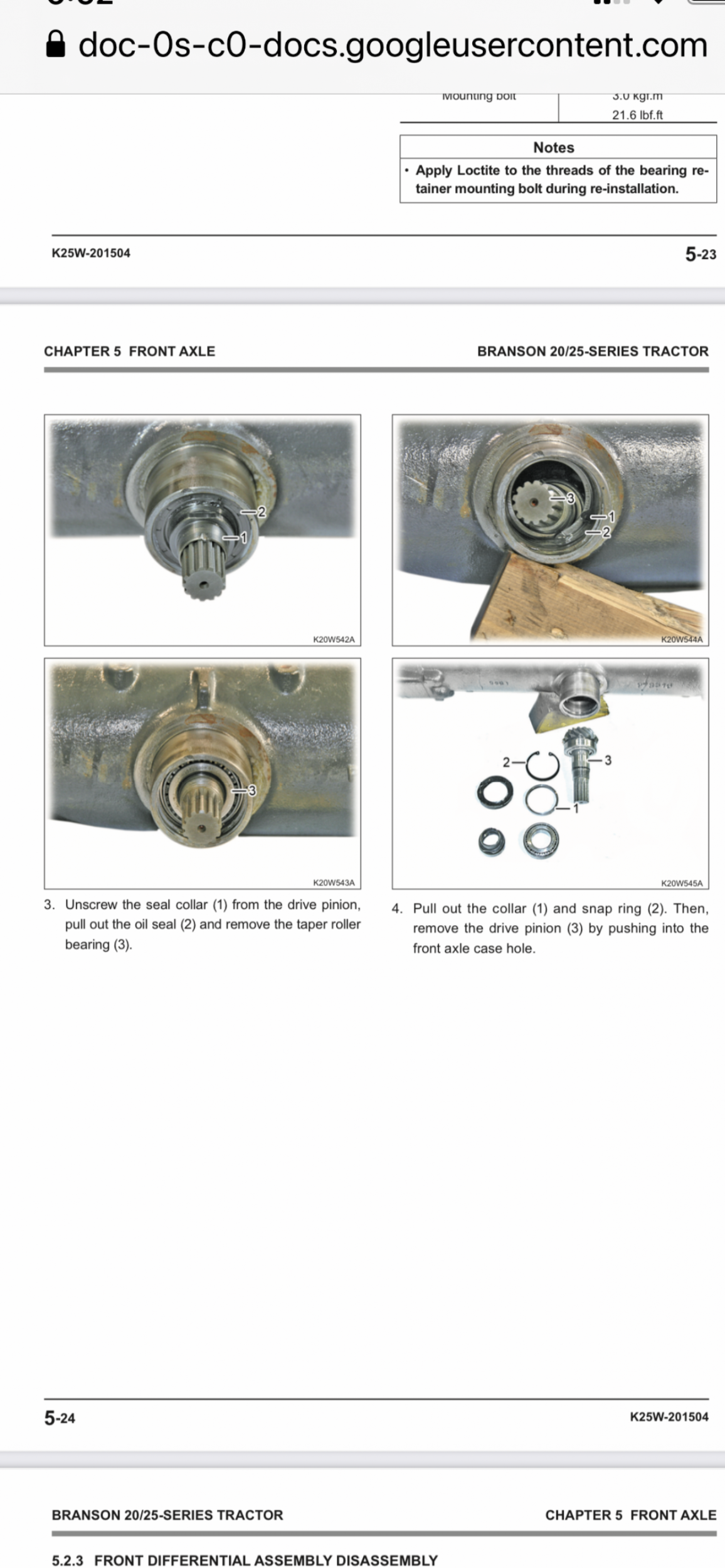 I have 2017 branson 3520cx tractor...the bearing on front axle is shot on piinion shaft i was able to seal out...now bearing stuck on shaft...Any suggestions how to get it out..thank u