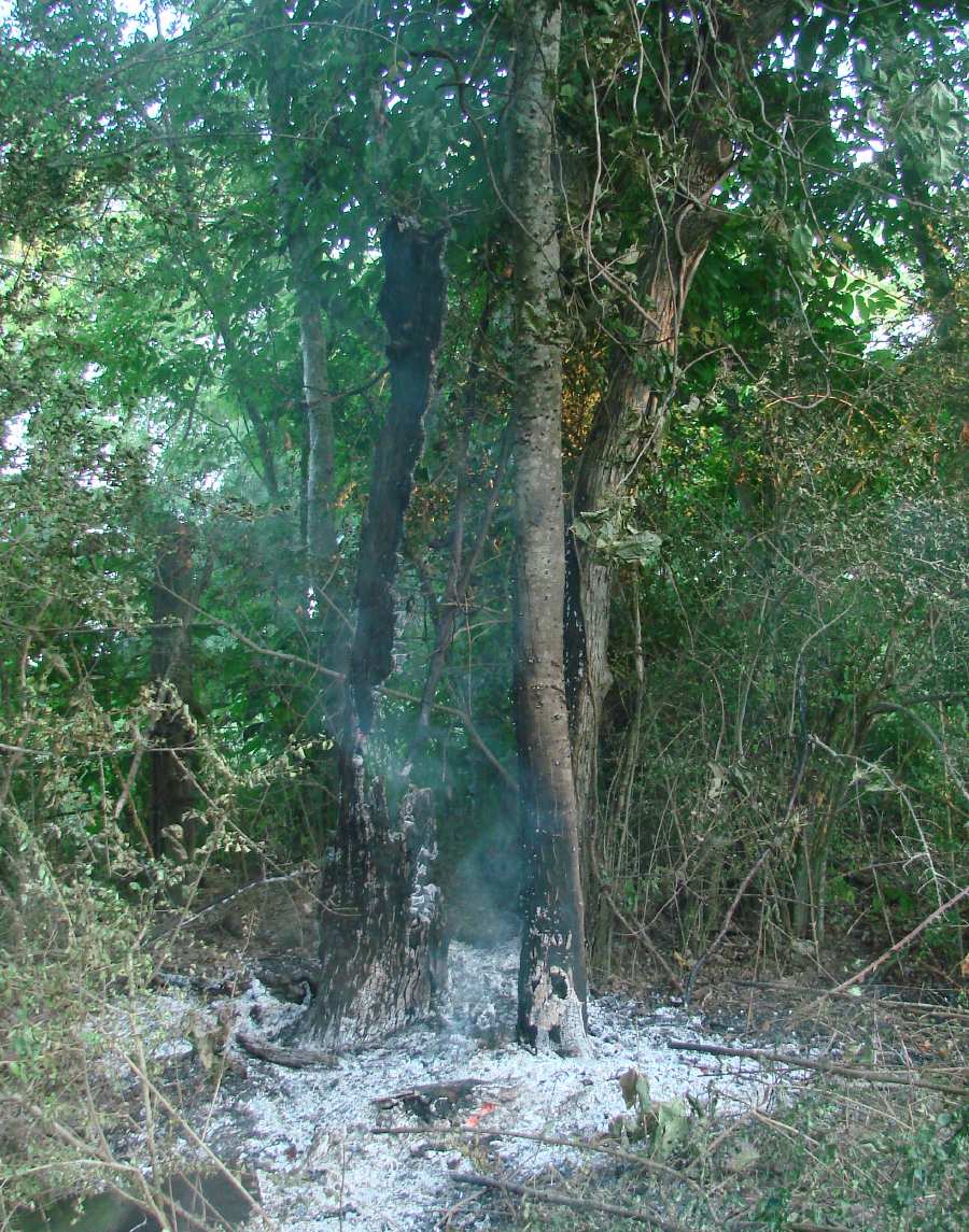 My improvised flame thrower seemed to work pretty well and I completely destroyed the hollow bee tree without doing much damage to the surrounding vegetation.