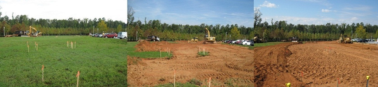 Here are a couple of pics from a recent job. They show before, during and after stages of grading a new parking lot from two different angles. I will take more pics after the curbing is installed and the asphalt is laid. Then I will try to get some pics of the finished lot after landscaping has been done.