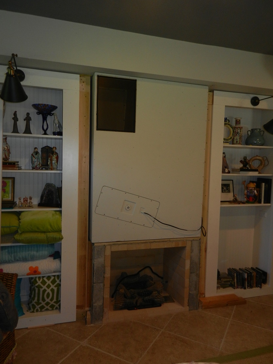 Then, buried the subwoofer above the ventless fireplace. Wife figured I would get rid of it...as a bit of a smart** I said we could put it up there? She said fine. I got a tape and had maybe 3/8-1/2 inch to spare. It was like the space was made for it and it was a total happenchance of luck.