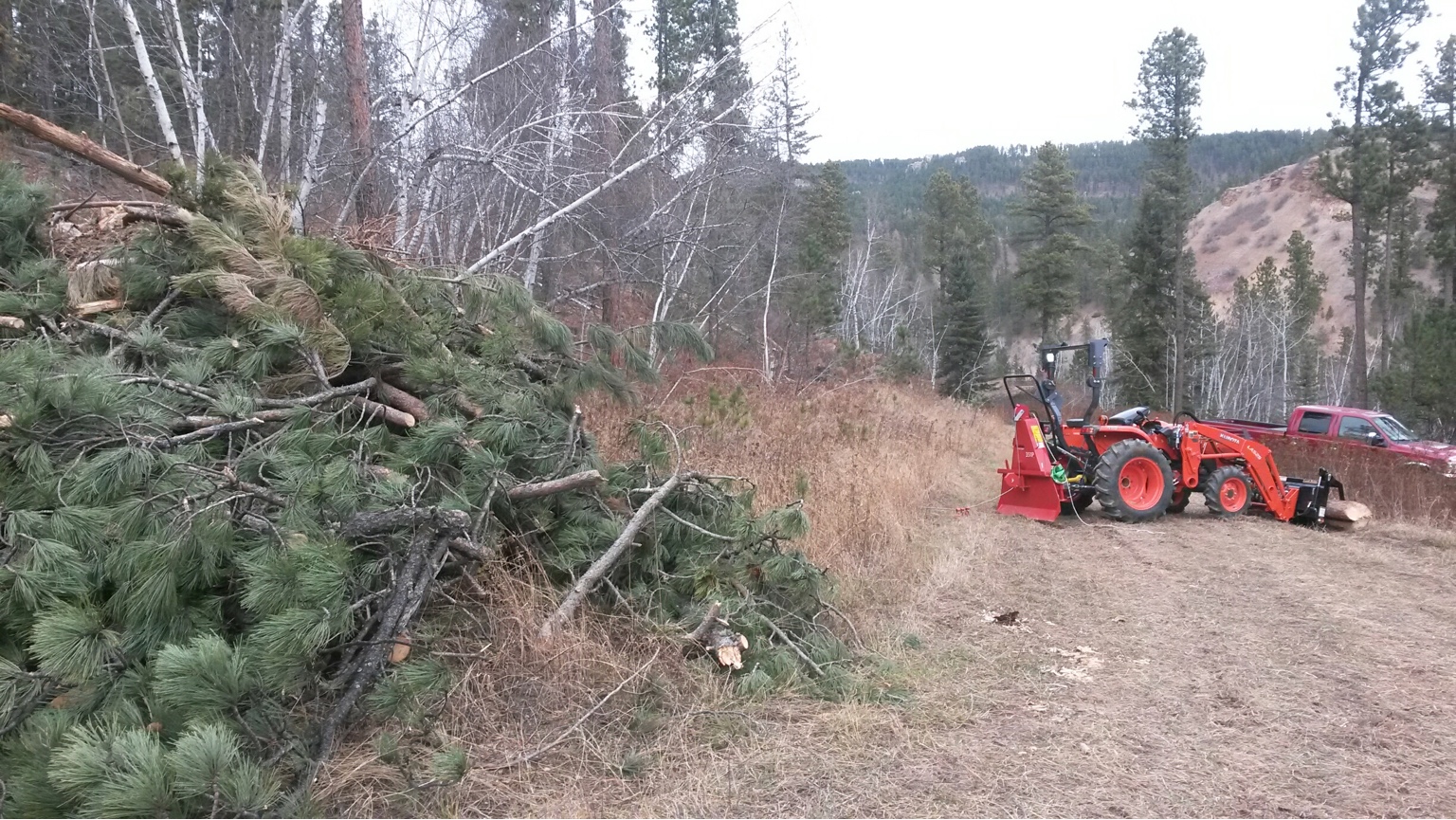 2' diameter wood only takes a couple of minutes to make a cut in: cut in half and your issue is more manageable- cut more times until its totally manageable. THEN, as LD1 says, grapple it (into a low trailer so you can take it back out with the tractor+grapple).