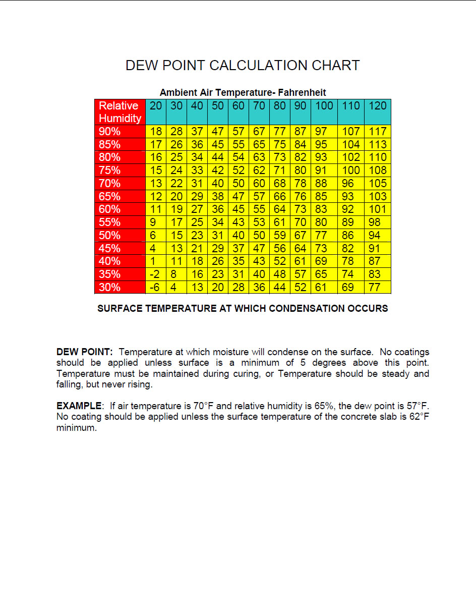 This chart shows when condensation will form (dew point) for a range of temps and humidity.