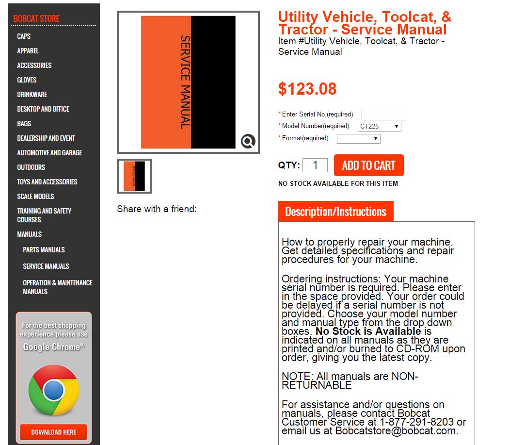 I just purchased a CT225 BobCat. Got the operators manual, but No service manual with it. Can I download from somewhere? Ebay has them for 109.00.