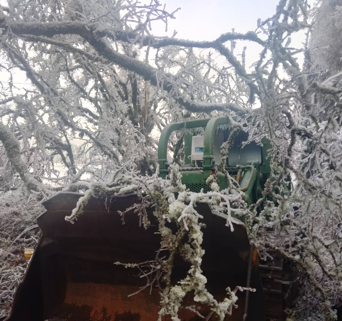 Most the ice is melted. Still no power. No crunching of falling branches for some time.