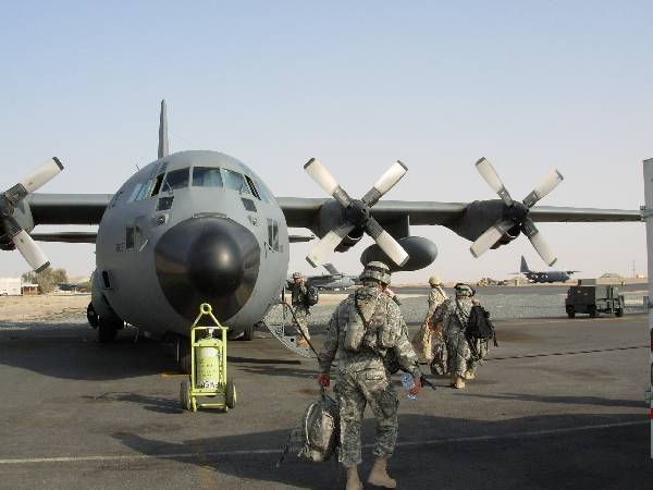 I went into Iraq on a C-130 flown by the 440th out of Milwaukee, WI (my home town). No need to convoy. I kept my 9MM wrapped in a plastic bag except when I was outside of the fence. The dust gets old real fast.