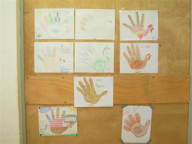 Thanksgiving is approaching and we are trying to celebrate it much the same way we would at home. The DFACs will be serving turkey and dressing tomorrow. As a tribute to our kids back home and the things that they do at school to celebrate Thanksgiving we have been drawing hand turkeys to hang on the wall. Aren't you proud of us?