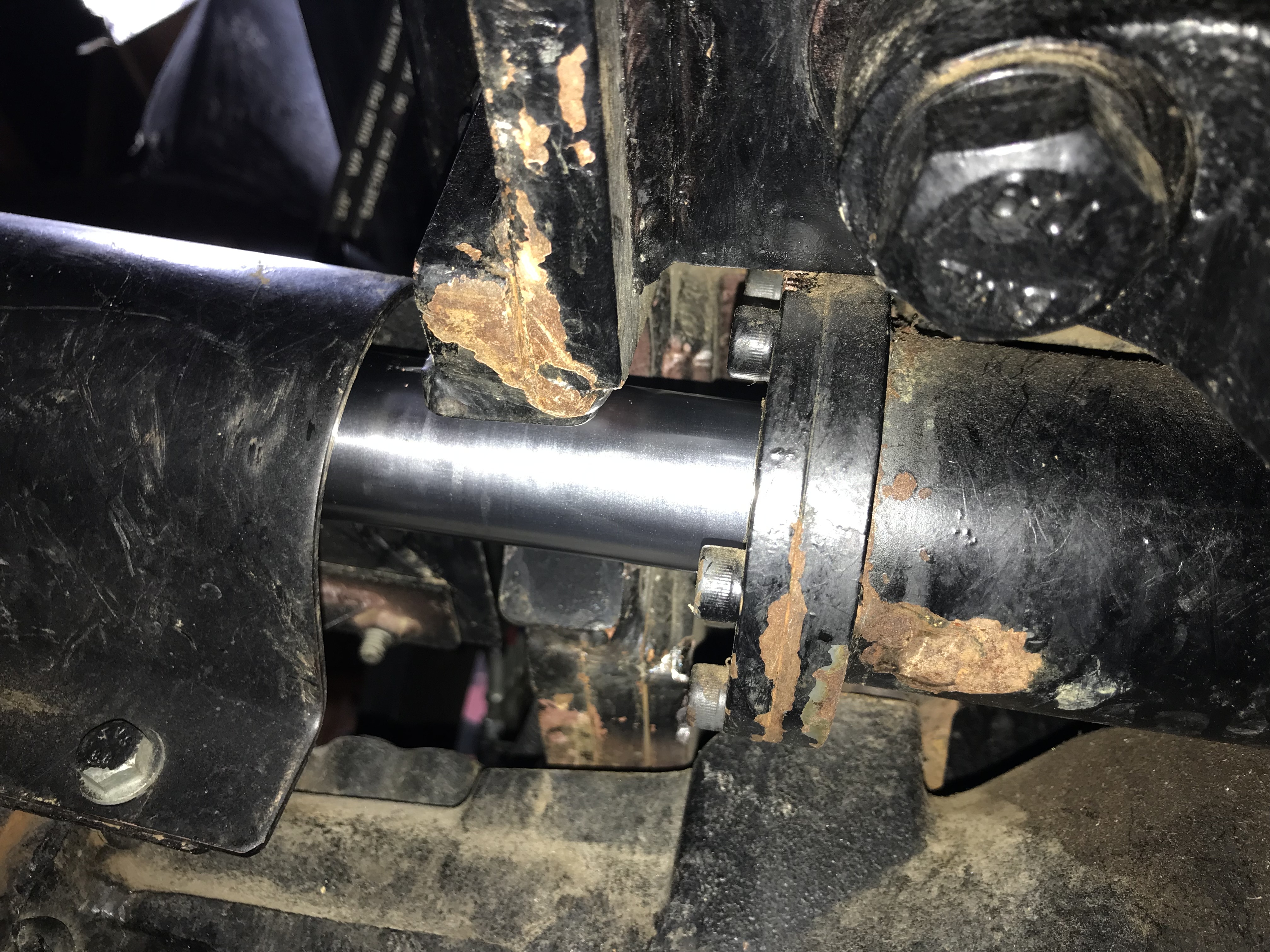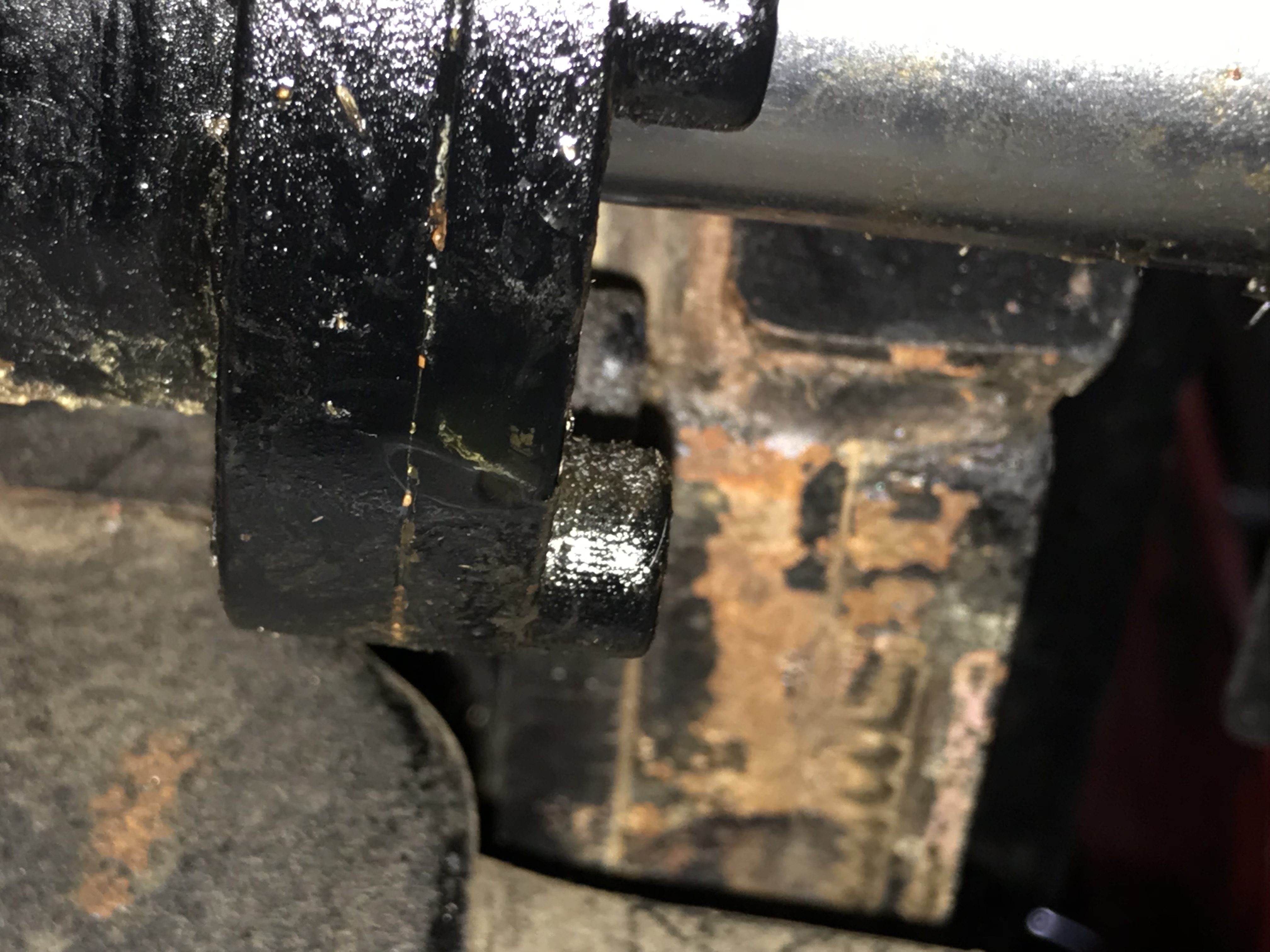 The first 3 are the damaged tie rod. Pic 5 is the top view. Pics 6,7,8 are taken from under the axle looking up. Hard to see the drop as I wiped it away but it's between the two visible socket head bolts. Pic 9 is of the same assembly on the opposite side and dry as a bone.
