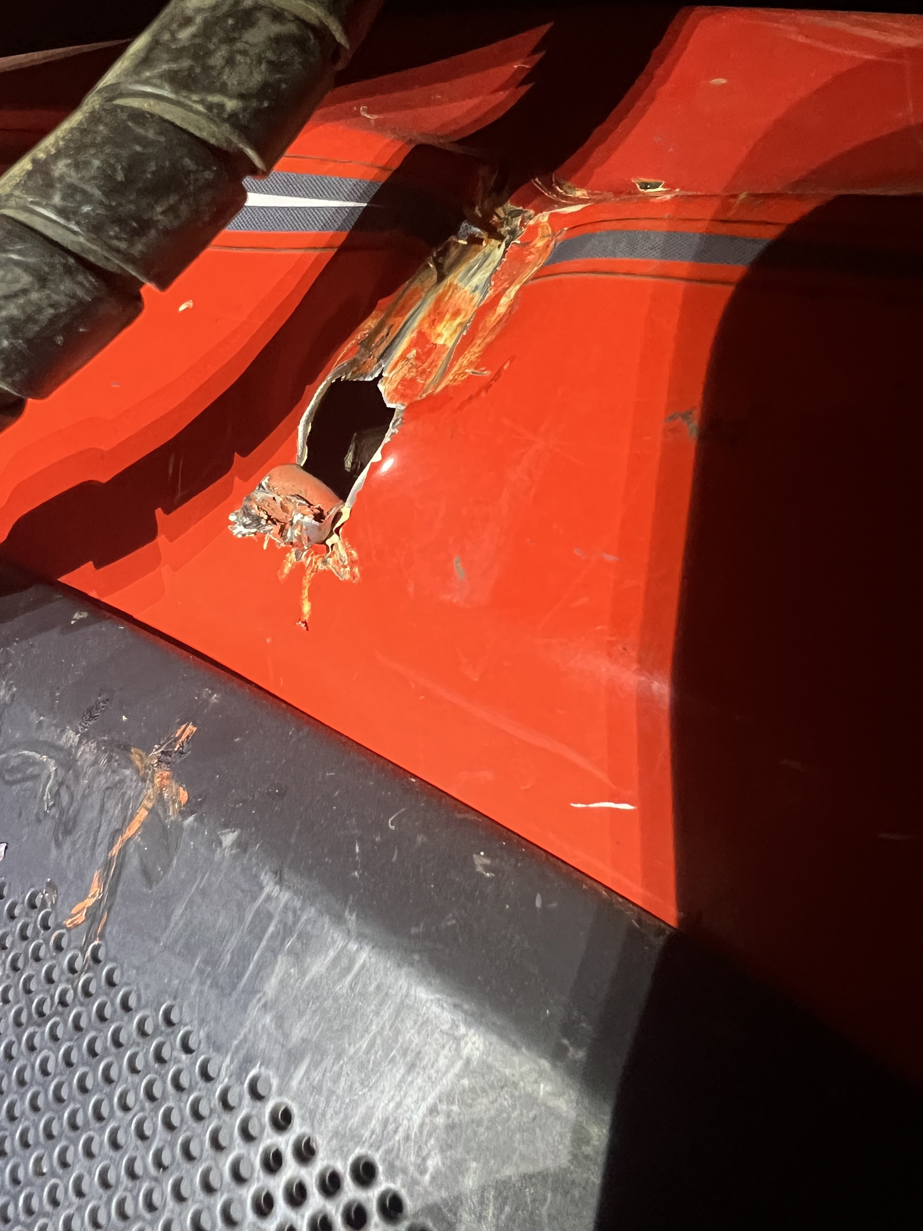 Two of the hard hydraulic lines with the T-fitting on the right loader arm caught the brush guard on the tractor when the loader was lowered while askew, so those are bent and one has a slow leak. Not sure if I can bend them back and tighten the fitting back up, but if not the two replacement hard lines are around $100.