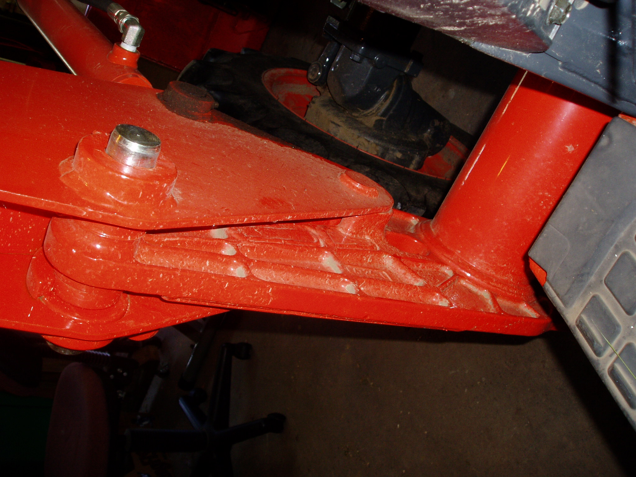 the brackets.The only difference is that I was thinking of putting the plates on the inside but I don't see much difference one way or the other.Thanks for the photos and this helps to reinforce that the casting is weldable and probably cast steel judging from the amount of welding done to it.Cast iron usually doesn't accept this amount of weld without a lot of care that I don't think Kubota would be willing to do that.