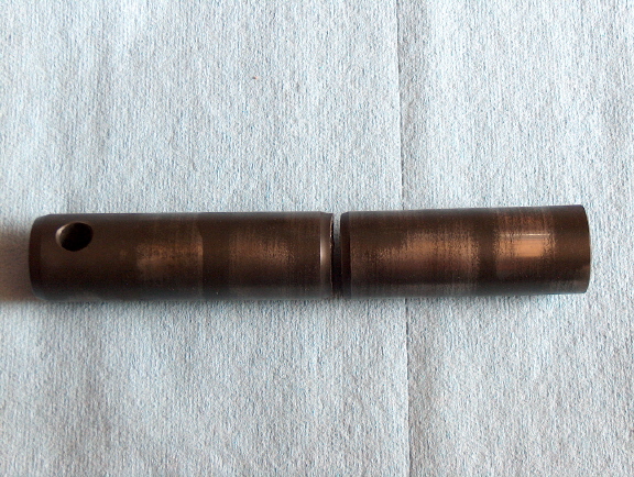 The first picture shows the broken pin, which broke at the weak point, the grease groove. The second picture is the new pin. It may not be visible but it looked like the heat treating was different at the grease groove and 1/2 inch on either side of it. Improvement? ? ?:confused3: