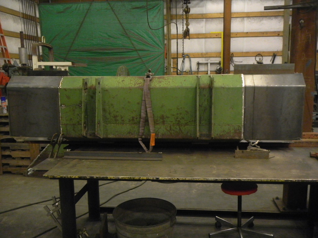Went to Montana couple weeks ago with a good friend of mine. His brother-n-law grows Timothy hay on hundreds of acres. He has a 5-feet wide bucket for his John Deere tractor, can't remember the model number of the tractor:confused3:, but the bucket looks way to small for the tractor. We brought the bucket home, now we are in the process of adding 18-inches to each side. Yesterday we cut everything out, and bent. Today got it just about welded up, and started removing the bow in the top of the bucket. Tomorrow we'll finish removing the bow, and weld some 4-inch C-channel under the top to reinforce it. Then weld a new cutting edge on. He bought AR-235 for the cutting edge. We cut a bevel on the AR-235 yesterday as well. Kind of a fun project.:D