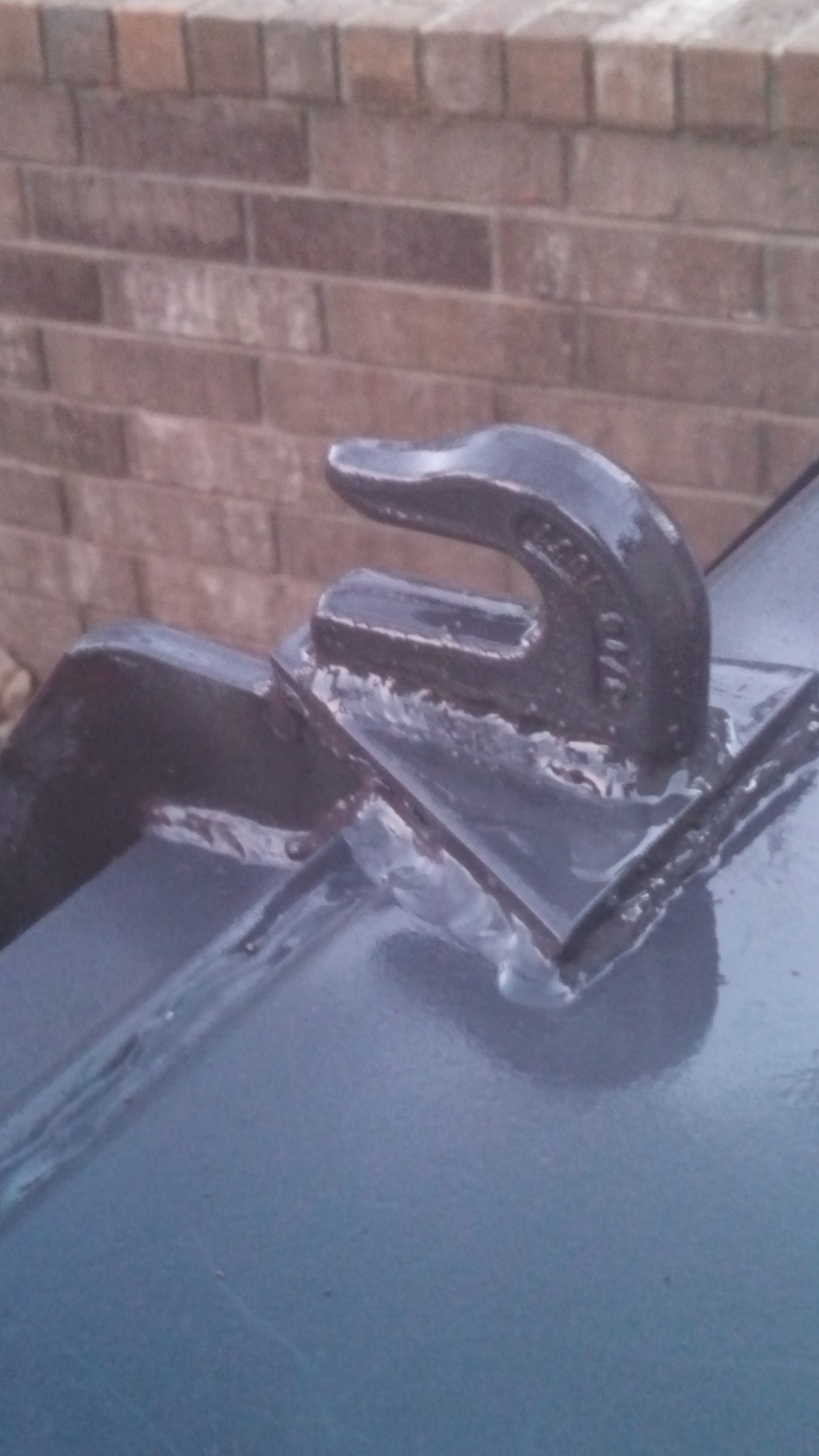 Looking for some comments or suggestions on my weld on points for bucket hooks and shackle mount. This is a 2014 Kioti DK45 KL401 6ft loader bucket. see pic. upper would be for shackle to secure logs or brush to bucket (from shackles attached to tooth bar bolt holes). Lower is for grab hook-will use backing plate on this one.