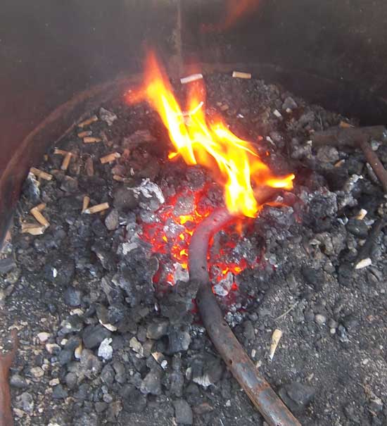 I have had some budding blacksmiths visiting this week at the farm, and they were in need of a forge, to learn there skill, so I built them one to use and to take back home, with them. two of them have had an interest for a number of years, and this is there first try at it and loving it,