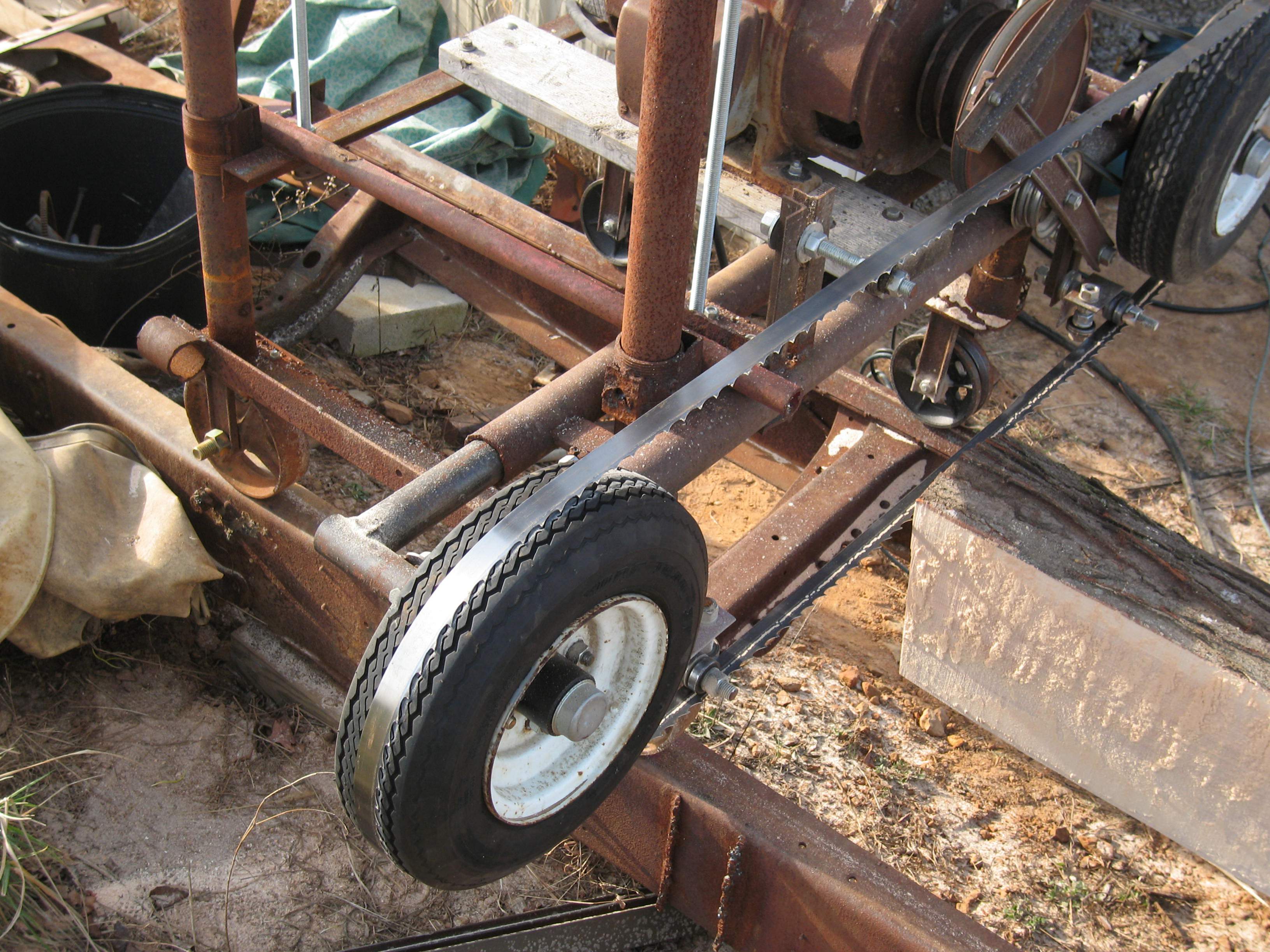 on the pulley system one Will need some type of a slide and some form of tension system to tighten the blade, (I just used a section of all thread and tighten up a nut (similar to a pulley tensioner),