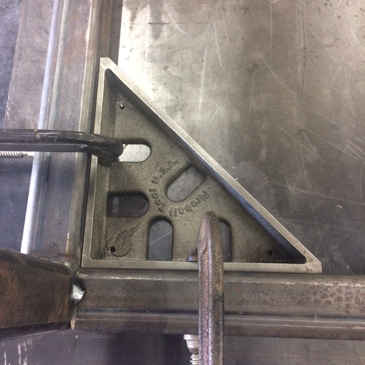 I admit it, I have an addiction... tools. I bought one of the fireball tool mini squares. Made clamping up corners easy. The more weight I added to the table, the more the saw horses would sway when you bumped it the hoist is my safety net.