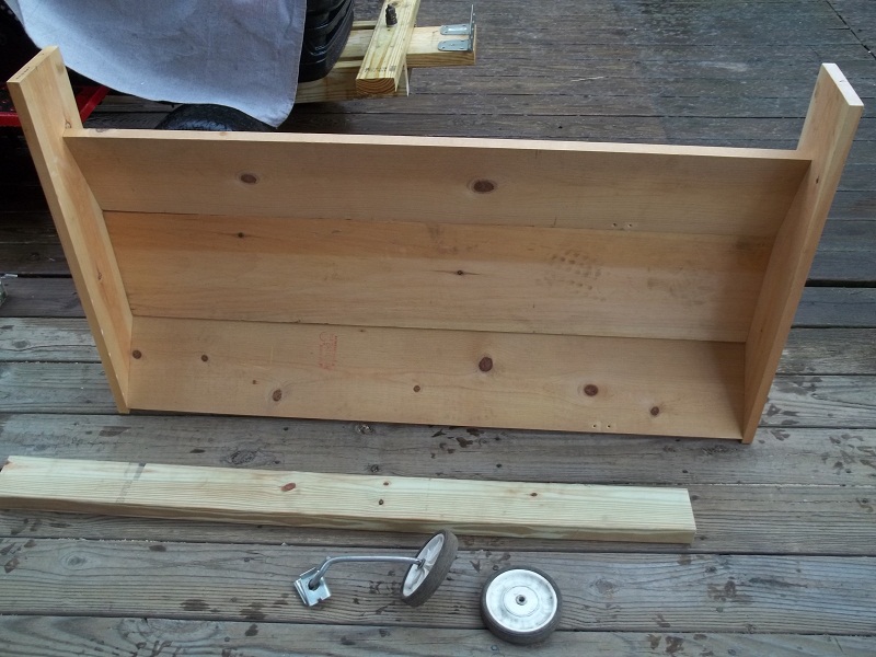 This is the Blade, I will cut the top off, not sure yet. I might be able to use it for something... The 2x4 is pressure treated is to mount it in the back where it will take all the force from snow. My only concern is that it might crack the 1x10and 1x8 boards since it's not pressure treated woods, just plain old Pine. The reason i use this is because of Weight issues. Too heavy to lift for backing up for a 12V motor even without snow. I can get a Winch, but that is money i don't want to spend, LOL. i want it to be FREE...