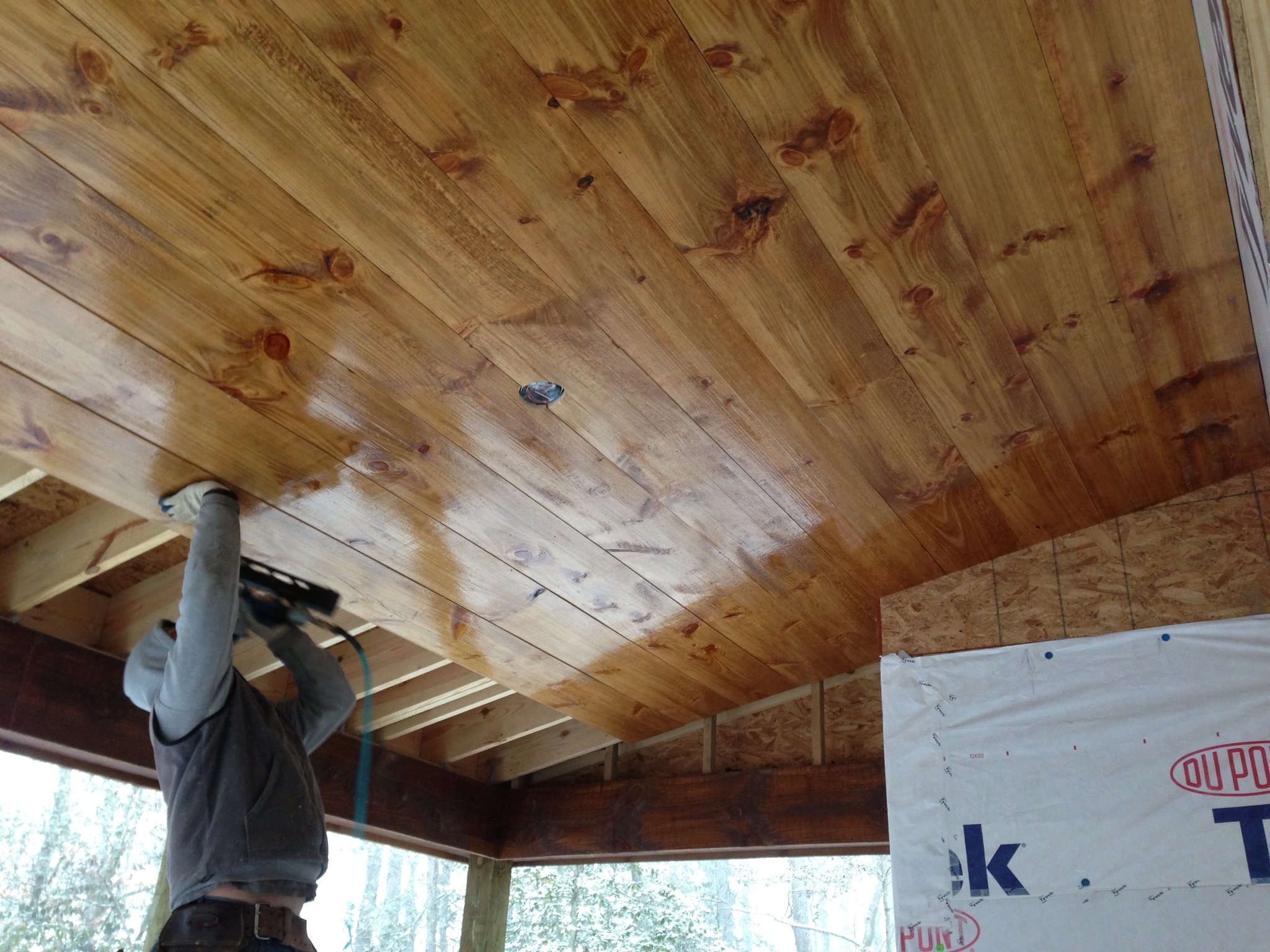 I have been wondering how the T & G knotty pine is going to look on the ceiling in a room that is essentially 9 feet wide by 25 feet long.
