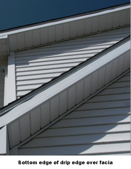 Dave had mentioned the obvious negative contrast on his house between drip edge that shows on facia of a different color. Sometimes that works. What I have been referring to is facia and drip edge of the same color. You really don't see it behind the spouting, but on the ends it does show.