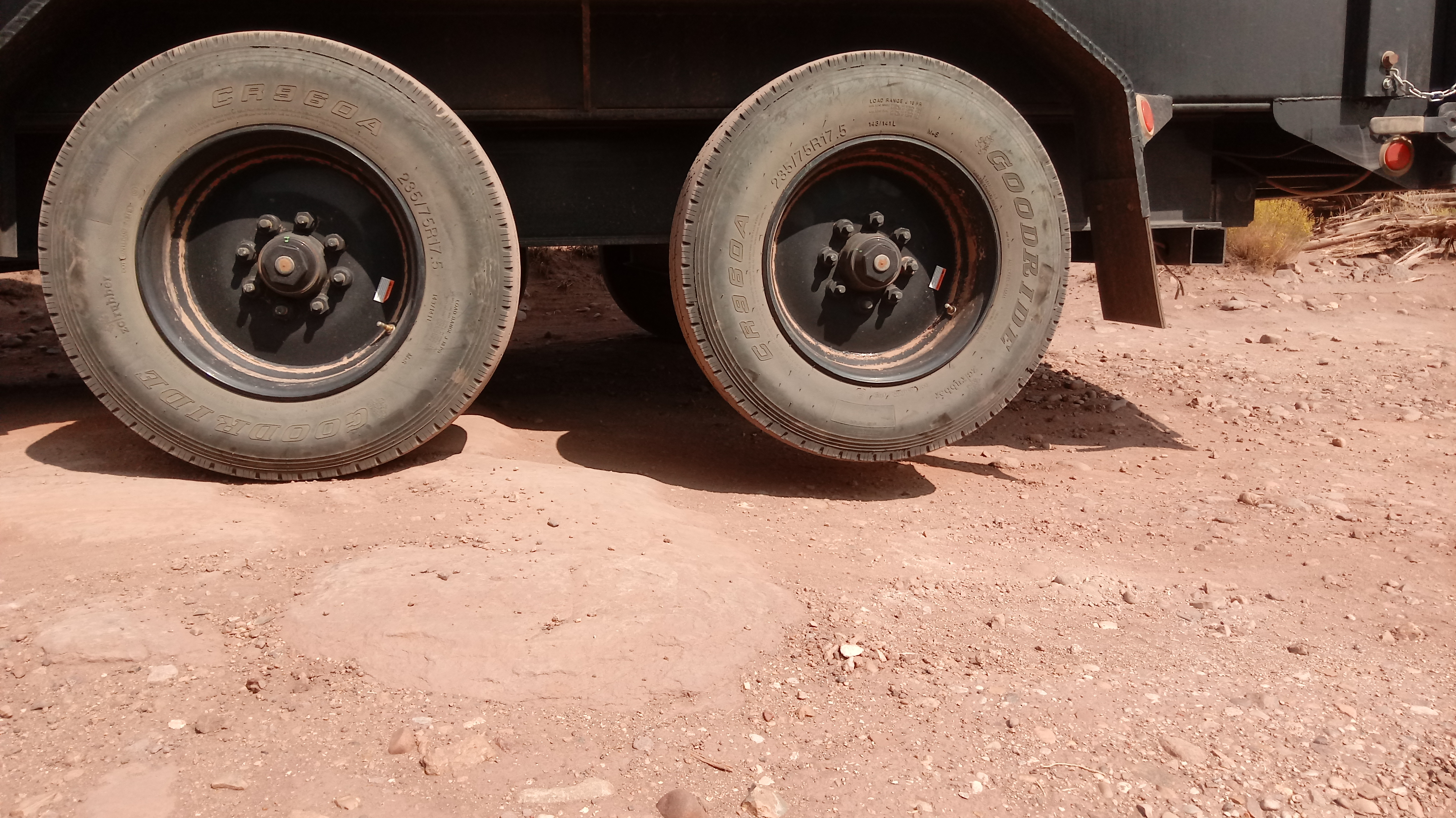 In my case, the three axle would not help. It is hard to see in the picture but I am parked on a sandstone ledge, the ground behind drops really fast. This goes back to one axle supporting the weight of three.